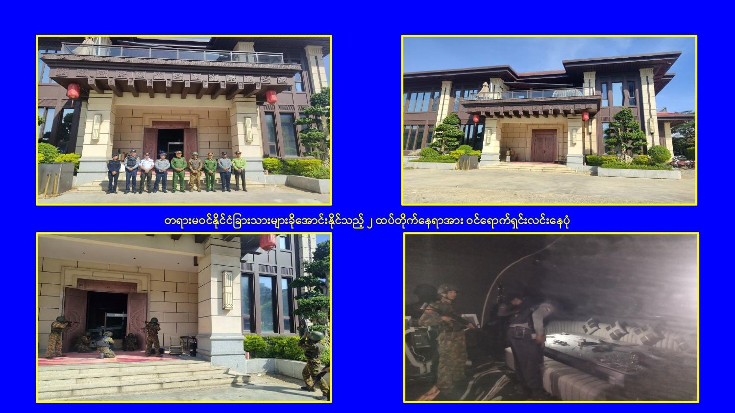 မြန်မာနိုင်ငံအစိုးရအနေဖြင့် မြဝတီမြို့နယ်ရှိ ရွှေကုက္ကိုလ်နယ်မြေနှင့် KK Park နယ်မြေများ၌ ကမ္ဘာတစ်ဝန်းလုံးမှ ကန့်ကွက်ရှုတ်ချလျက်ရှိသော online လိမ်လည်မှုများ နှင့် online လောင်းကစားမှုများ ကျူးလွန်လုပ်ဆောင်ခဲ့ကြသည့် နေရာများတွင် လုံခြုံရေးတပ်ဖွဲ့ဝင်များ၊ အုပ်ချုပ်ရေးအဖွဲ့အစည်းများနှင့် ဒေသတွင်း တာဝန်ရှိသူများ ပါဝင်သည့် ပူးပေါင်းစစ်ဆင်ရေးအဖွဲ့များဖြင့် ဝင်ရောက်ရှင်းလင်းခြင်း၊ တရားမဝင်အဆောက်အအုံများနှင့် online လိမ်လည်မှုများတွင် အသုံးပြုခဲ့သည့် အသုံးအဆောင်ပစ္စည်းများအား စနစ်တကျ ဖြိုချဖျက်ဆီးခြင်း၊ တရားမဝင် ပြည်ပနိုင်ငံသားများအား ဖော်ထုတ်ဖမ်းဆီးအရေးယူဆောင်ရွက်ခြင်း၊ သက်ဆိုင်ရာနိုင်ငံများသို့ ပြည်နှင်လွှဲပြောင်းပေးခြင်းများ ဆက်လက်ဆောင်ရွက်လျက်ရှိသည်။