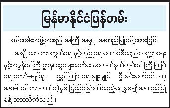 ဝန်ကြီးဌာန ကြေညာချက်များ