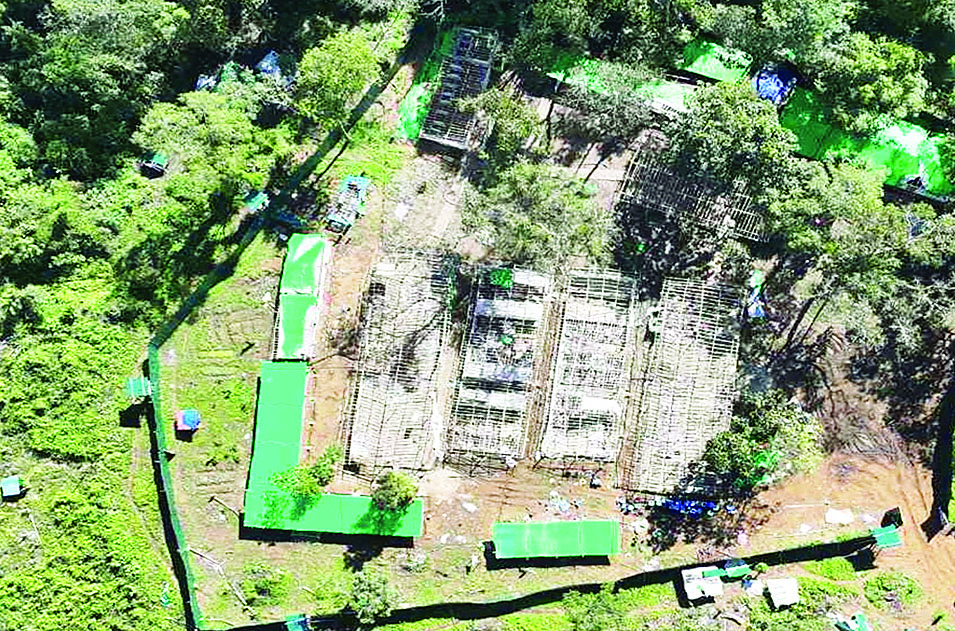 ဆက်လက်၍ လုံခြုံရေးတပ်ဖွဲ့ဝင်များသည် နယ်မြေလုံခြုံရေးလုပ်ငန်းများဆောင်ရွက်ခဲ့ရာ နိုဝင်ဘာ ၂၆ ရက်တွင် မိုင်းနောင်မြို့၏ အရှေ့တောင်ဘက် ဝမ်ကျောင်းကျေးရွာအနီး၌ အွန်လိုင်းလိမ်လည်မှုနှင့် လောင်းကစားလုပ်ငန်းဆောင်ရွက်ရန် ဆောက်လုပ်လျက်ရှိသည့် အလျားပေ ၁၅၀၊ အနံ ၁၅ ပေ၊ အမြင့် ၁၅ ပေရှိ သွပ်မိုးတဲ (လူမနေ) တစ်လုံး၊ အလျားပေ ၁၂၀၊ အနံပေ ၃၀၊ အမြင့် ၁၅ ပေရှိ သွပ်မိုးအလုပ်ရုံ တစ်လုံး၊ အလျား ပေ ၁၅၀၊ အနံ ခြောက်ပေ၊ အမြင့်ရှစ်ပေရှိ သွပ်မိုးအထပ်သားကာ တစ်လုံး၊ အလျား ၁၅ ပေ၊ အနံ ခြောက်ပေ၊ အမြင့် ရှစ်ပေရှိ သွပ်မိုးအထပ်သားကာ တစ်လုံး၊ အလျား ပေ ၁၅၀၊ အနံ ၁၅ ပေ၊ အမြင့် ၁၅ ပေရှိ သွပ်မိုးတဲ(လူမနေ) တစ်လုံး၊ အလျားပေ ၈၀၊ အနံ ၁၅ ပေ၊ အမြင့် ၁၅ ပေရှိ အမိုးအကာမရှိတဲ တစ်လုံး၊ အလျားပေ ၁၀၀၊ အနံ ၂၅ ပေ၊ အမြင့် ၁၅ ပေရှိ သွပ်မိုး အထပ်သားကာတဲ တစ်လုံး၊ အလျားပေ ၁၀၀၊ အနံ ၂၅ ပေ၊ အမြင့် ၁၅ ပေရှိ အမိုးအကာမရှိ ပြိုကျတဲ တစ်လုံး၊ အလျားပေ ၁၀၀၊ အနံ ၂၅ ပေ၊ အမြင့် ၁၅ ပေရှိ မိုးကာမိုးတဲ တစ်လုံး၊ အလျား ပေ ၁၀၀၊ အနံ ၂၅ ပေ၊ အမြင့် ၁၅ ပေရှိ မိုးကာမိုးပြိုကျတဲ တစ်လုံး၊ အလျားပေ ၂၀၊ အနံပေ ၁၂၀၊ အမြင့် ၁၅ ပေရှိ မိုးကာမိုးအထပ် သားဂိုဒေါင်တစ်လုံး၊ အလျားပေ ၂၀ ပတ်လည်သွပ်မိုးအထပ်သား ကာ လူနေအိမ်တစ်လုံး၊ အလျား ပေ ၁၅၀၊ အနံ ၁၅ ပေ၊ အမြင့် ၁၅ ပေရှိ အမိုးမရှိတဲ နှစ်လုံး၊ ဂါလန် ၈၀၀ ဆံ့ တိုင်ကီအပြာ လေးလုံးတို့ကိုလည်းကောင်း၊ မိုင်းနောင်မြို့၏ အရှေ့တောင်ဘက် နောင်တောက်ကျေးရွာ၏ တောင်ဘက်နေရာတစ်ဝိုက်အား ထပ်မံ၍ရှင်းလင်းရာ အွန်လိုင်းလိမ်လည် လောင်းကစားမှုများလုပ်ကိုင်နေသူများဖြစ်သည့် တရုတ်နိုင်ငံသား ၂၆ ဦးနှင့် မြန်မာနိုင်ငံသား ရှစ်ဦးတို့ကိုလည်းကောင်း ဖမ်းဆီးရမိခဲ့ပြီး ၎င်းတို့၏ ဖော်ထုတ်ချက်များအရ အဆိုပါကျေးရွာအနီး ၌ သိုဝှက်သိမ်းဆည်းထားသည့် MA-1 သေနတ် တစ်လက်၊ MA-13 သေနတ် တစ်လက်၊ AK - 12 သေနတ် တစ်လက်၊ ကာဘိုင် သေနတ် တစ်လက်၊ WINCHESTER 12 V သေနတ် တစ်လက်၊ ၉ မမကျည် ၁၀ တောင့်၊ 12 V ကျည် နှစ်တောင့်၊ ၉ မမကျည်အိမ် တစ်ခု၊ AK ကျည်အိမ် တစ်ခုနှင့် ကာဘိုင် ကျည်အိမ် တစ်ခုတို့ကို သိမ်းဆည်း ရမိခဲ့ကြောင်း သိရသည်။