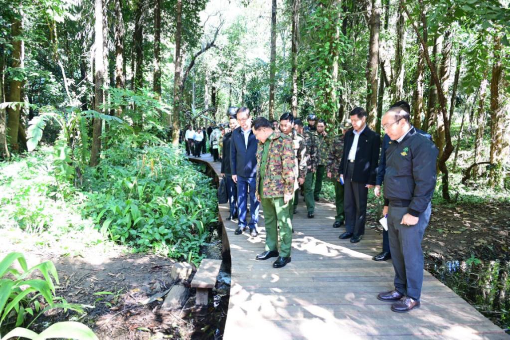 ပြည်ထောင်စုသမ္မတမြန်မာနိုင်ငံတော် ယာယီသမ္မတ နိုင်ငံတော်လုံခြုံရေးနှင့် အေးချမ်းသာယာရေးကော်မရှင်ဥက္ကဋ္ဌ ဗိုလ်ချုပ်မှူးကြီး မင်းအောင်လှိုင် ပြင်ဦးလွင်မြို့၊ အမျိုးသားကန်တော်ကြီးဥယျာဉ် ထိန်းသိမ်းဆောင်ရွက်ထားရှိမှုအခြေအနေများအား သွားရောက်ကြည့်ရှုစစ်ဆေး၊ ဒေသ၏ ရေခံမြေခံကောင်းများကို အကျိုးရှိစွာအသုံးချ၍ ပန်းမြို့တော်အင်္ဂါရပ်နှင့် ကိုက်ညီအောင် ဖော်ဆောင်သွားကြရမည်ဖြစ်