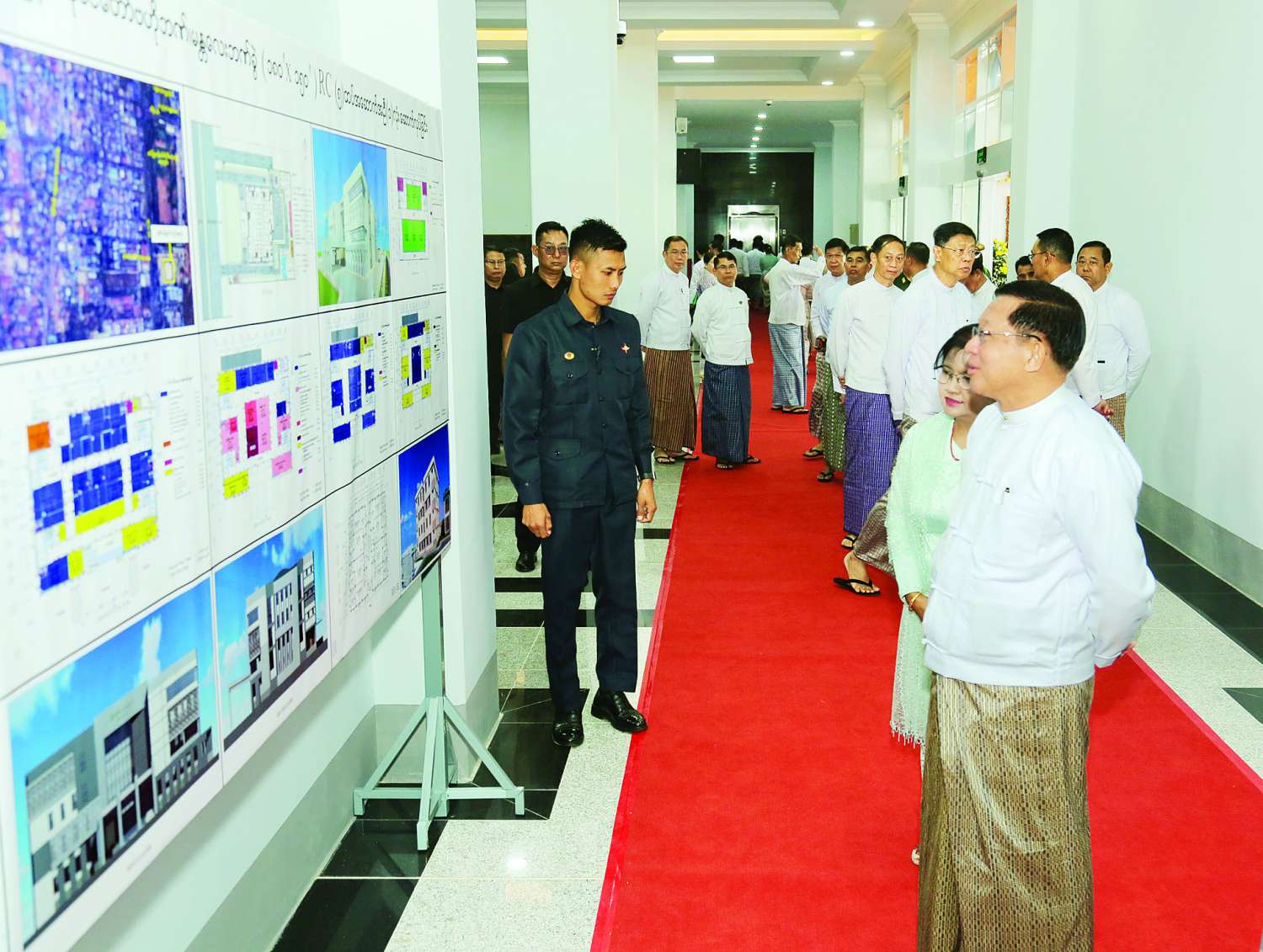 ယင်းနောက် နိုင်ငံတော်ယာယီသမ္မတ နိုင်ငံတော်လုံခြုံရေးနှင့်အေးချမ်းသာယာရေးကော်မရှင်ဥက္ကဋ္ဌသည် မြန်မာနိုင်ငံတော်ဗဟိုဘဏ် (မန္တလေးဘဏ်ခွဲ) အဆောက်အဦသစ် တည်ဆောက်ခဲ့မှု မှတ်တမ်းဓာတ်ပုံများအား ကြည့်ရှုရာ တာဝန်ရှိသူများက ရှင်းလင်းတင်ပြခဲ့သည်။