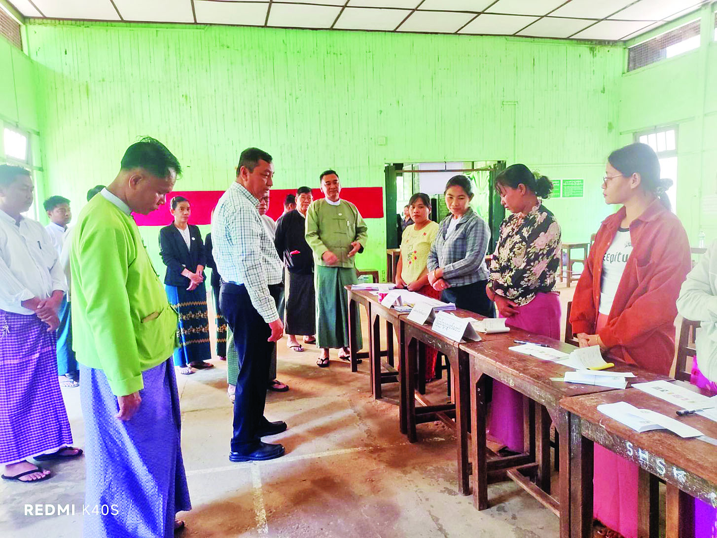 မွန်ပြည်နည် ကျိုက်မရောမြို့နယ်၌ ၂၀၂၅ ခုနှစ် ပါတီစုံဒီမိုကရေစီ အထွေထွေရွေးကောက်ပွဲအတွင်း တာဝန်ထမ်းဆောင်ကြမည့် သက်ဆိုင်ရာတာဝန်ရှိသူများ ကြိုတင်ဆန္ဒမဲပေးခြင်းကို ဒီဇင်ဘာ ၁၈ ရက်မှစတင်၍ ဆောင်ရွက်လျက်ရှိရာ ယနေ့နံနက် ၉ နာရီတွင် ပြည်ထောင်စုရွေးကောက်ပွဲကော်မရှင် အဖွဲ့ဝင် ဦးကိုကိုလွင် (မွန်ပြည်နယ်တာဝန်ခံ)နှင့် တာဝန်ရှိသူများ ကွင်းဆင်းကြည့်ရှုသည်။