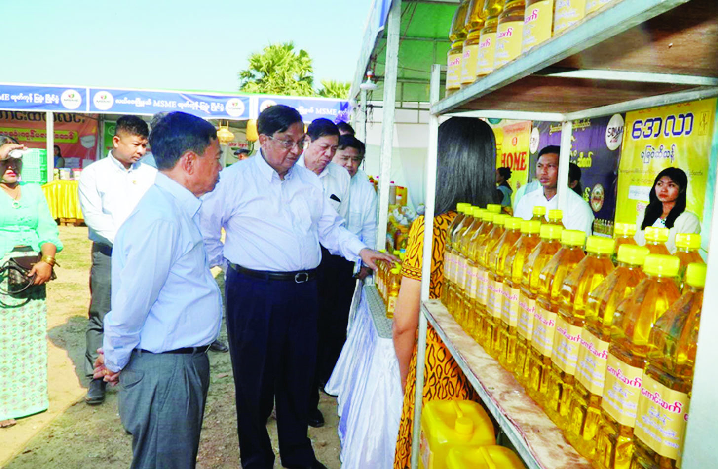 ထို့နောက် ပြည်ထောင်စုဝန်ကြီးနှင့် နေပြည်တော်ကောင်စီဥက္ကဋ္ဌတို့သည် MSME လုပ်ငန်းရှင်များနှင့် တွေ့ဆုံစဉ် ပြည်ထောင်စုဝန်ကြီးက နိုင်ငံတော်အနေဖြင့် MSME များ ဖွံ့ဖြိုးတိုးတက်ရေးအတွက် အားပေးဆောင်ရွက်လျက်ရှိပြီး ငွေကြေးအရင်းအနှီးရရှိရေးအတွက် ချေးငွေများ ထုတ်ချေးပေးလျက်ရှိကြောင်း၊ ထုတ်ကုန်ပစ္စည်းများ ဈေးကွက်ရရှိရေးအတွက် တိုင်းဒေသကြီး/ပြည်နယ်အသီးသီးအလိုက် MSME ထုတ်ကုန်ပစ္စည်းပြပွဲပြိုင်ပွဲများ ကျင်းပပြုလုပ်ပေးလျက်ရှိသည့်အပြင် ပြည်ထောင်စုအဆင့် MSME ထုတ်ကုန်ပြပွဲပြိုင်ပွဲများကိုလည်း ကျင်းပပေးလျက်ရှိကြောင်း၊ MSME များသည် နိုင်ငံတော်၊ တိုင်းဒေသကြီး၊ ပြည်နယ်၊ ခရိုင်၊ မြို့နယ်အသီးသီး၏ စီးပွားရေးကို ၉၀ ရာခိုင်နှုန်းကျော် အထောက်အကူပြုလျက်ရှိကြောင်း၊ ထုတ်လုပ်မှုလုပ်ငန်းများသည် ဈေးကွက်ရှိမှသာ ရေရှည်ရပ်တည်နိုင်မည်ဖြစ်သဖြင့် MSME များမှ ထုတ်လုပ်သည့် ထုတ်ကုန်ပစ္စည်းများကို သုံးစွဲသူပြည်သူများ သိရှိနိုင်ရေးအတွက် ယခုလို ထုတ်ကုန်ပစ္စည်းပြပွဲပြိုင်ပွဲများကို ကျင်းပပေးခြင်း ဖြစ်ကြောင်း။