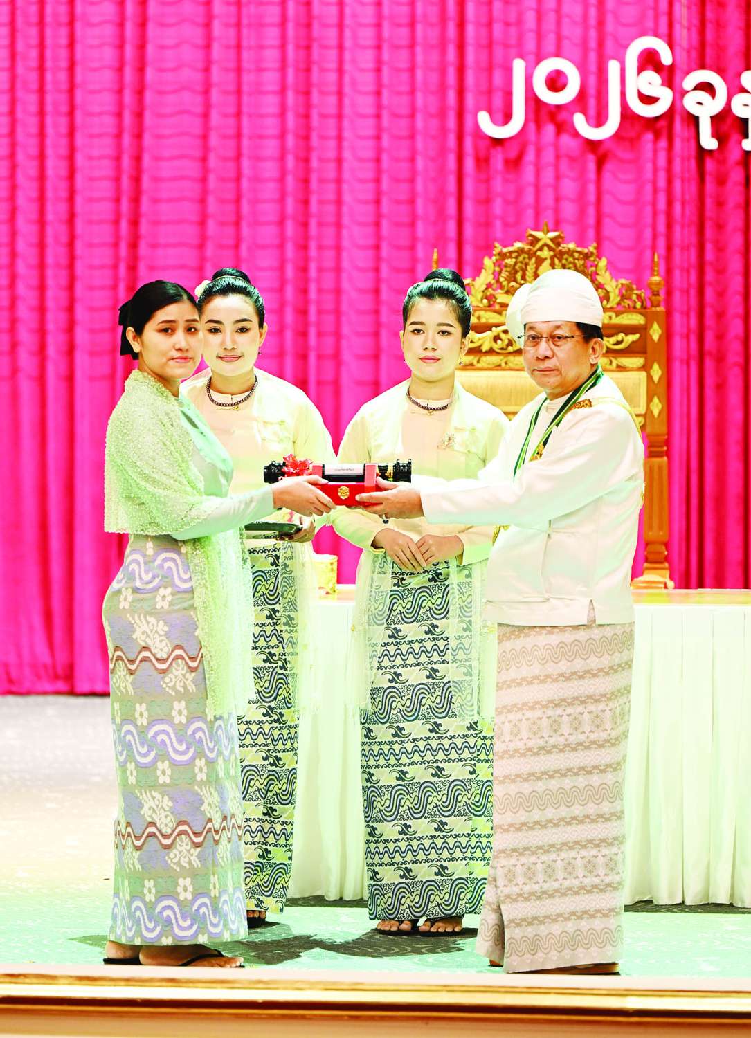 ဘွဲ့ခံပုဂ္ဂိုလ်ကြီးများ၊ ဧည့်သည်တော်ကြီးများအနေဖြင့် ကိုယ်စိတ်နှစ်ဖြာ ရွှင်လန်းချမ်းမြေ့ကြပြီး အသက်ရှည်ရှည်ကျန်းကျန်းမာမာနှင့် မိမိအကျိုး၊ သူတစ်ပါးအကျိုး၊ နိုင်ငံတော်၏ အကျိုးကိုဆတက်ထမ်းပိုးတိုးပွားအောင် သယ်ပိုးရွက်ဆောင်နိုင်ကြပါစေကြောင်း ဆန္ဒပြုဆုမွန်တောင်း ကြောင်းဖြင့်ပြောကြားသည်။