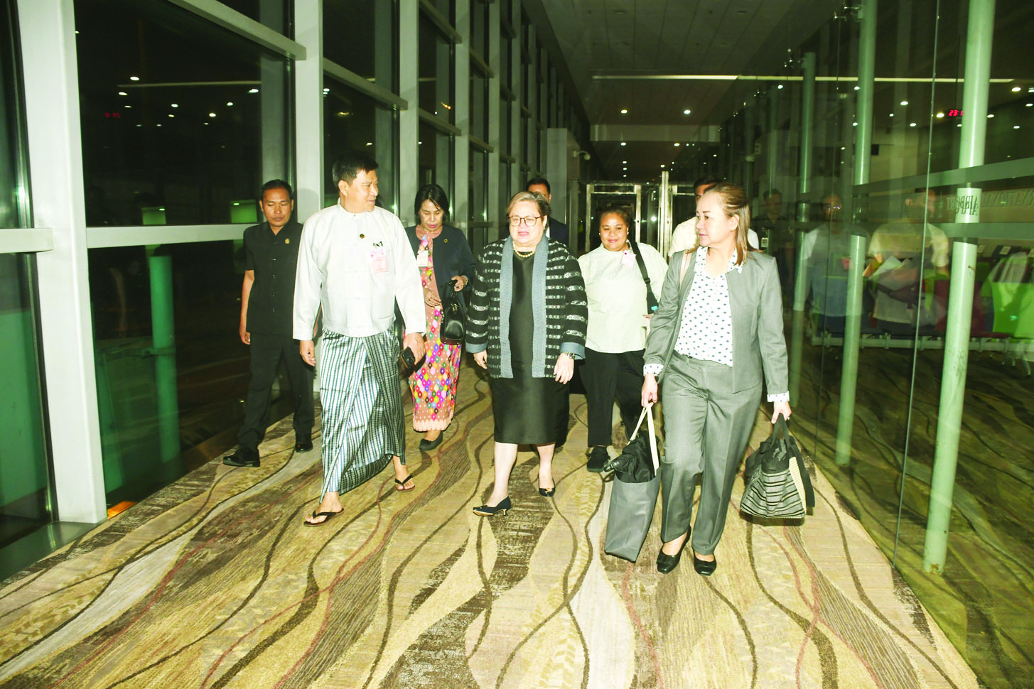 အာဆီယံဥက္ကဋ္ဌ၏ မြန်မာနိုင်ငံ ဆိုင်ရာ အထူးကိုယ်စားလှယ် ဖိလစ်ပိုင်နိုင်ငံခြားရေးဝန်ကြီး H.E. Ms. Maria Theresa Parreno Lazaro ဦးဆောင်သည့် ကိုယ်စားလှယ်အဖွဲ့သည် ယမန်နေ့ ည ၁၁ နာရီ ၁၀ မိနစ်တွင် လေကြောင်းခရီးဖြင့် ရန်ကုန်မြို့သို့ရောက်ရှိသည်။