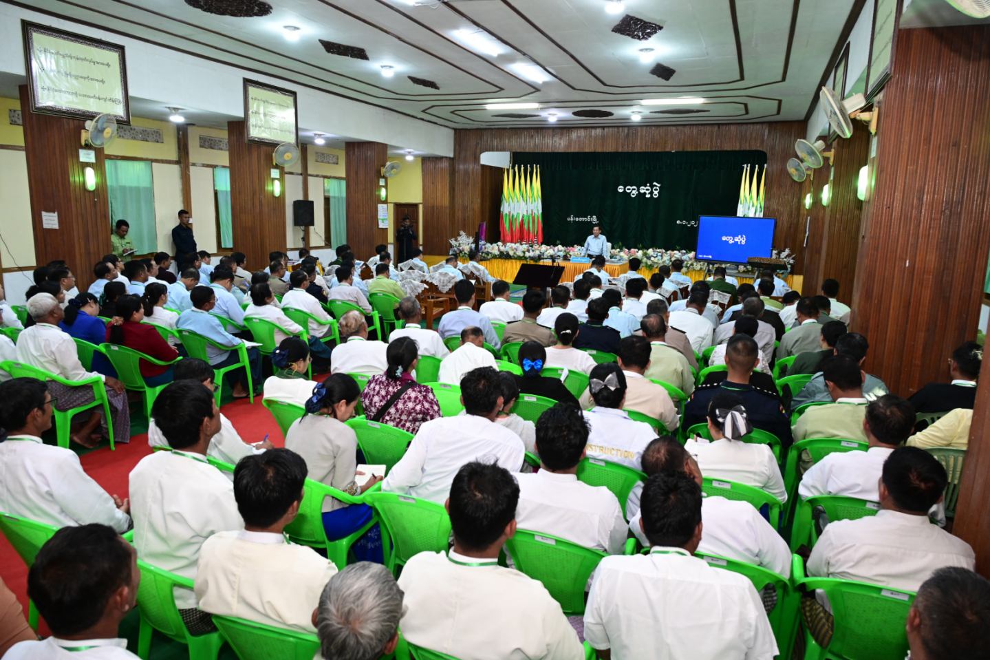 နိုင်ငံတော်အားစတင်တာဝန်ယူချိန်တွင် ဦးတည်ချက်များ ချမှတ်ဆောင်ရွက်ခဲ့ပြီး ယခုအခါ မိမိတို့အစိုးရ၏ အန္တိမရည်မှန်းချက်ဖြစ်သည့် ရွေးကောက်ပွဲအား ၂၀၂၅ ခုနှစ် ဒီဇင်ဘာလ ၂၈ ရက်နေ့တွင် ကျင်းပခဲ့ပြီးဖြစ်ကြောင်း၊ ကျန်ရှိနေသည့် အပိုင်း(၂)နှင့် အပိုင်း(၃)ကိုလည်း ဆက်လက်ကျင်းပပြုလုပ်သွားမည်ဖြစ်ကြောင်း၊ မိမိတို့အနေဖြင့် နိုင်ငံတော်အား ပါတီစုံဒီမိုကရေစီလမ်းကြောင်းပေါ်တွင် ဆက်လက်လျှောက်လှမ်းနိုင်ရေး ဆောင်ရွက်သွားမည်ဖြစ်ကြောင်း၊ ရွေးကောက်ပွဲအပိုင်း(၁)တွင် ဆန္ဒမဲပေးမှုများပြားပြီး ပြည်သူများအနေဖြင့် ဒီမိုကရေစီလမ်းကြောင်းပေါ်တွင် ပါဝင်လျှောက်လှမ်းလိုသည့် ဆန္ဒများရှိသည်ကို သိရှိရသဖြင့် အောင်မြင်သည့်ရွေးကောက်ပွဲဖြစ်ကြောင်း၊ ထို့ကြောင့် ပန်းတောင်းဒေသတွင်လည်း ရွေးကောက်ပွဲကျင်းပချိန်တွင် ဆန္ဒမဲပေးချိန်၌ ရာခိုင်နှုန်းများပြားစွာ ပိုမိုပေးအပ်နိုင်ရေး ဝိုင်းဝန်းကြိုးပမ်းဆောင်ရွက်သွားကြစေလိုကြောင်း၊ ဆန္ဒမဲပေးရာတွင်လည်း နိုင်ငံတော်နှင့် ဒေသအကျိုးကို ဆောင်ရွက်ပေးနိုင်သည့်သူ၊ အမျိုးဘာသာသနာအကျိုးကို သယ်ပိုးထမ်းရွက်နိုင်မည့်သူ၊ နိုင်ငံတည်ရှိနေသရွေ့ တည်တံ့ခိုင်မြဲစွာတည်ရှိနေမည့် တပ်မတော်နှင့် လက်တွဲဆောင်ရွက်နိုင်မည့် ကိုယ်စားလှယ်လောင်းများကို ရွေးချယ်၍ ဆန္ဒမဲပေးနိုင်ရန်လိုကြောင်း၊ အလားတူ ဥပဒေပြုရေးလုပ်ငန်းများကို ဆောင်ရွက်မည့်သူများဖြစ်သဖြင့် ဥပဒေကို သိရှိနားလည်ကြသူများလည်းဖြစ်ရန်လိုကြောင်း၊ အထူးသဖြင့် ပညာတတ်ကိုယ်စားလှယ်လောင်းများကို ရွေးချယ်နိုင်ရန်လိုကြောင်း၊ သို့မှသာ ပန်းတောင်းမြို့နယ်အတွက် ကိုယ်စားလှယ်ကောင်းများရရှိမည်ဖြစ်ကြောင်း၊ သို့ဖြစ်၍ ပန်းတောင်းမြို့နယ်အတွင်း ကျင်းပပြုလုပ်မည့် ရွေးကောက်ပွဲ အောင်မြင်စွာကျင်းပပြုလုပ်နိုင်ရေး ဝိုင်းဝန်းဆောင်ရွက်ပေးကြရန် တိုက်တွန်းပြောကြားလိုကြောင်းဖြင့် ပြောကြားသည်။