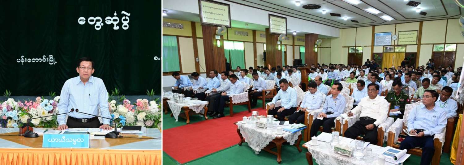 ဦးစွာ ပဲခူးတိုင်းဒေသကြီးဝန်ကြီးချုပ်က ဒေသဆိုင်ရာအချက်အလက်များ၊ စိုက်ပျိုးရေးနှင့် မွေးမြူရေးလုပ်ငန်းများ ဆောင်ရွက်လျက်ရှိမှုအခြေအနေများ၊ စိုက်ပျိုးရေးလုပ်ငန်းများအတွက် လျှပ်စစ်မြစ်ရေတင်လုပ်ငန်းများ ဆောင်ရွက်ပေးလျက်ရှိမှု၊ ဒေသအတွင်း အသား၊ ငါး၊ နို့နှင့် ဥ ဖူလုံမှုအခြေအနေများ၊ MSME လုပ်ငန်းများဖွံ့ဖြိုးရေးလုပ်ငန်းများ ဆောင်ရွက်ပေးလျက်ရှိမှု၊ အသက်မွေးဝမ်းကြောင်းသင်တန်းများ ဖွင့်လှစ်သင်ကြားပေးလျက်ရှိမှု၊ ဒေသတွင်း ပညာရည်မြှင့်တင်ရေးနှင့်၊ ကျန်းမာရေးကဏ္ဍမြှင့်တင်ရေး ဆောင်ရွက်ပေးလျက်ရှိမှု၊ ရွေးကောက်ပွဲဆိုင်ရာလုပ်ငန်းများ ပြင်ဆင်ဆောင်ရွက်ထားရှိမှု အခြေအနေများနှင့်ပတ်သက်၍ ရှင်းလင်းတင်ပြသည်။