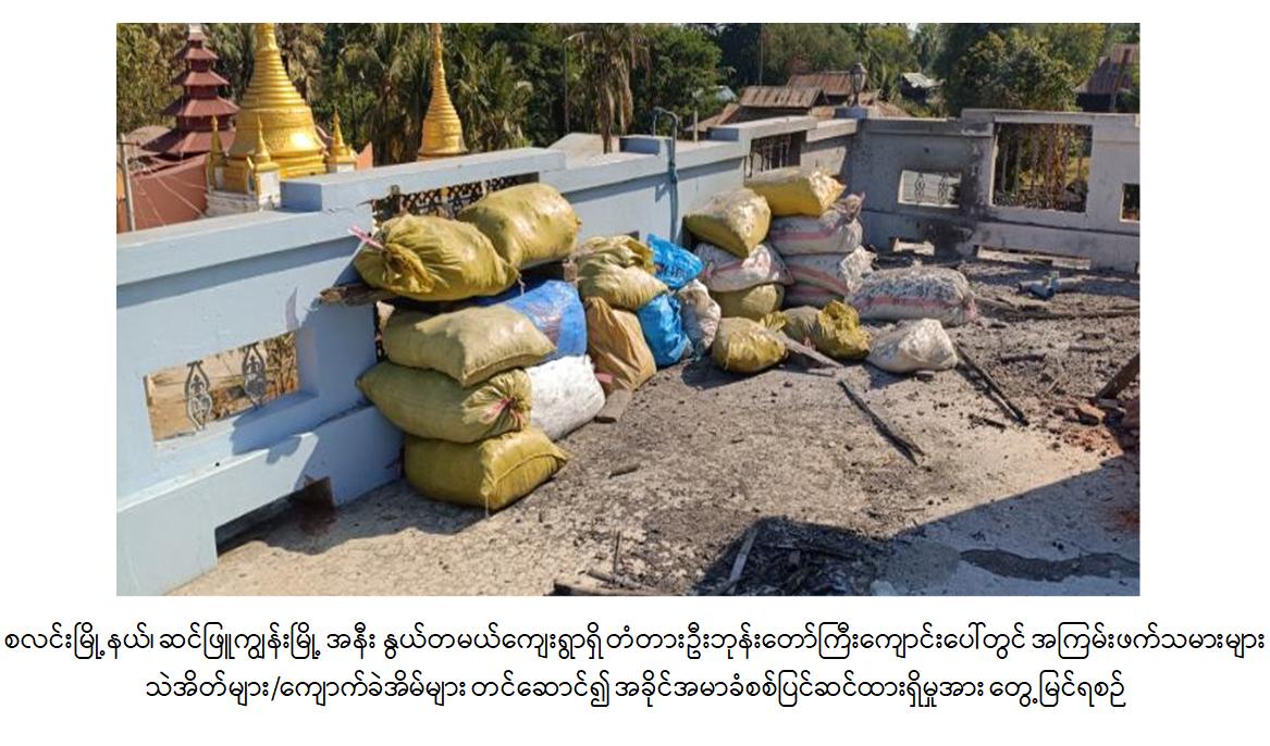 PDF အမည်ခံအကြမ်းဖက်သမားများက ဆင်ဖြူကျွန်းမြို့၊ နွယ်တမယ်ကျေးရွာရှိ စေတီပုထိုးများ၊ ဘုန်းတော်ကြီးကျောင်းများနှင့် နေအိမ်များအတွင်း ဝင်ရောက်အခြေပြု၍ အဖျက်အမှောင့်လုပ်ငန်းများ ဆောင်ရွက်လျက်ရှိသဖြင့် တပ်မတော်က အကြမ်းဖက်ချေမှုန်းရေးလုပ်ငန်းများ ဆောင်ရွက်