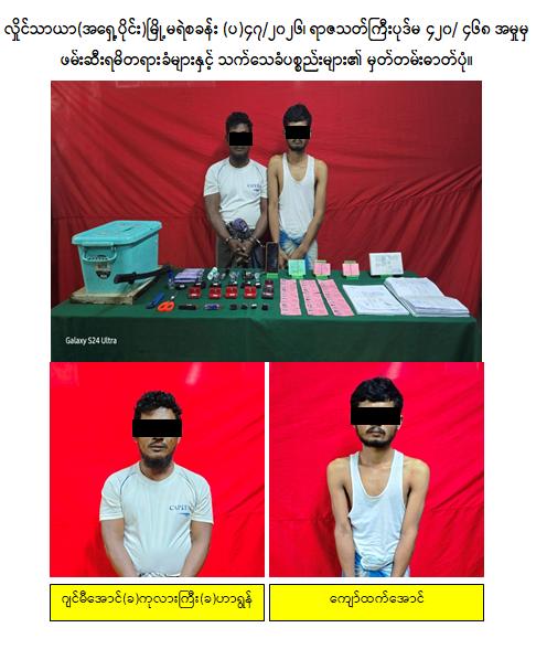 ထိုသို့ နိုင်ငံသားစိစစ်ရေးကတ်ပြားများနှင့် ဌာနဆိုင်ရာ/ရုံးစာရွက်စာတမ်းများ လိမ်လည်အတုပြုလုပ်သည့် ဖမ်းဆီးရမိတရားခံ ဂျင်မီအောင်(ခ)ကုလားကြီး(ခ)ဟာရွန်နှင့် ကျော်ထက်အောင် တို့အား လှိုင်သာယာ(အရှေ့ပိုင်း)မြို့မရဲစခန်း (ပ)၄၇/၂၀၂၆၊ ရာဇသတ်ကြီးပုဒ်မ ၄၂၀/ ၄၆၈ ဖြင့် လည်းကောင်း၊ ညီထွေးနိုင်(ခ)ကုလားဘုန်းကြီး(ခ)ဟာစန်းနှင့် ဇင်မောင်နိုင်(ခ)နူရွတ်လာတို့အား လှော်ကားနယ်မြေရဲစခန်း (ပ)၁၆/၂၀၂၆၊ ရာဇသတ်ကြီးပုဒ်မ ၄၂၀/ ၄၆၈ ဖြင့်လည်းကောင်း အမှုရေးဖွင့်ဖမ်းဆီးစစ်ဆေးကာ ထိရောက်စွာအရေးယူနိုင်ရေးနှင့် ပူးပေါင်းပါဝင်ကျူးလွန်သူများ အားလည်း ဆက်လက်ဖော်ထုတ်လျက်ရှိကြောင်း သတင်းရရှိသည်။