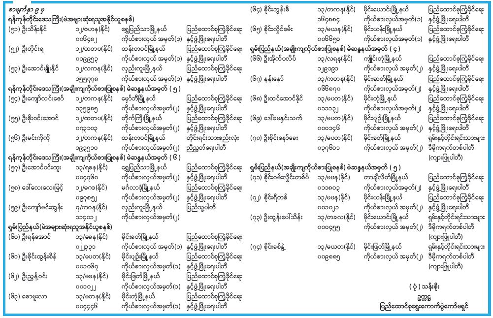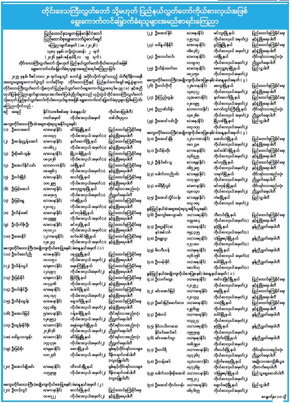 တိုင်းဒေသကြီးလွှတ်တော် သို့မဟုတ် ပြည်နယ်လွှတ်တော်ကိုယ်စားလှယ်အဖြစ် ရွေးကောက်တင်မြှောက်ခံရသူများအမည်စာရင်းကြေညာ