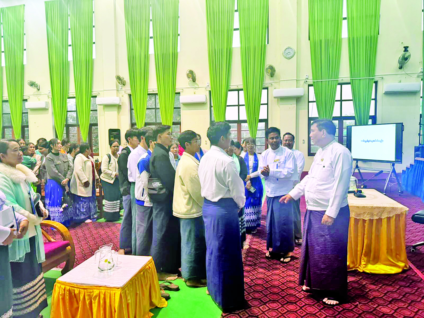 ဆက်လက်၍ စုဝေးခန်းမ၌ ပါမောက္ခချုပ်၊ ဒုတိယပါမောက္ခချုပ်၊ ဌာနမှူးများ၊ ဆရာ ဆရာမများ၊ ဝန်ထမ်းများနှင့်တွေ့ဆုံ၍ တင်ပြချက်များအပေါ် ပြည်ထောင်စုဝန်ကြီးက လိုအပ်သည်များ ပေါင်းစပ်ညှိနှိုင်းဆောင်ရွက်ပေးခဲ့ကြောင်း သိရသည်။