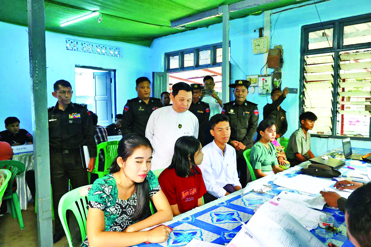 ထို့နောက် ပြည်ထောင်စုဝန်ကြီးသည် ဒေသခံပြည်သူများအနေဖြင့် အထွေထွေရွေးကောက်ပွဲတွင် နိုင်ငံသားကတ်ပြား ပျက်စီး/ပျောက်ဆုံးမှုကြောင့် မဲပေးပိုင်ခွင့် မဆုံးရှုံးစေရေးနှင့် နိုင်ငံသားကတ်ပြား ကိုင်ဆောင်မဲပေးနိုင်ရေးအတွက် ဝန်ထမ်းများက နိုင်ငံသားကတ်ပြားပျက်စီး/ပျောက်ဆုံးသည့် ဒေသခံပြည်သူများအား ပန်းခင်းစီမံချက်အဆင့် (၃) ဖြင့် အိမ်ထောင်စုလူဦးရေစာရင်းနှင့် နိုင်ငံသားစိစစ်ရေး ကတ်ပြားထုတ်ပေးနိုင်ရန် လုပ်ထုံးလုပ်နည်းနှင့်အညီ စိစစ်ကာ လုပ်ငန်းစဉ်အဆင့်ဆင့် ဆောင်ရွက်နေမှုနှင့် နိုင်ငံသားစိစစ်ရေးကတ်ပြား ရရှိပြီးသူများအား e-ID စနစ်ဖြင့် Biographic/ Biometric ကောက်ယူကာ Unique ID နံပါတ်တစ်ပါတည်း ဆောင်ရွက်ထုတ်ပေးနေမှုအခြေအနေများကို လှည့်လည်ကြည့်ရှုအားပေးပြီး One Stop Service ဖြင့် ဆောင်ရွက်ပြီးဖြစ်သည့် နိုင်ငံသားစိစစ်ရေးကတ်ပြားများကို ကာယကံရှင်တစ်ဦးချင်းထံ ပေးအပ်သည်။