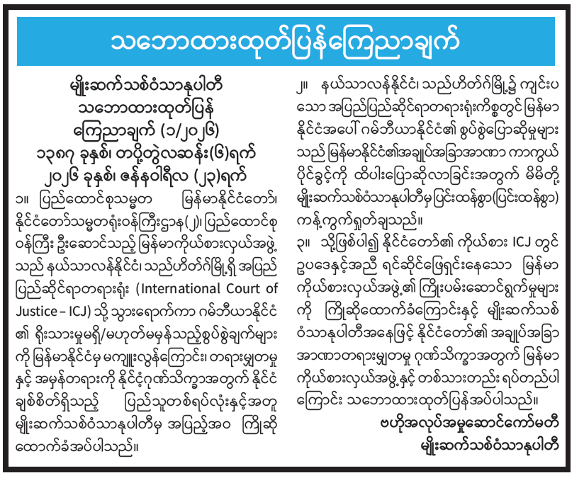 နိုင်ငံတော်အစိုးရ၏ ကြေညာချက်များ