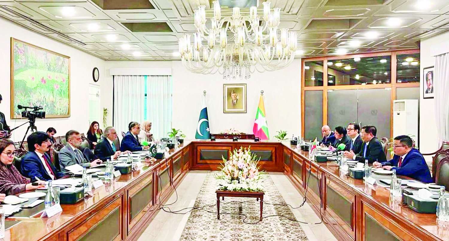 ပြည်ထောင်စုဝန်ကြီး ဦးသန်းဆွေ ဦးဆောင်သော မြန်မာကိုယ်စားလှယ်အဖွဲ့နှင့် ပါကစ္စတန်နိုင်ငံ ဒုတိယဝန်ကြီးချုပ်နှင့် နိုင်ငံခြားရေးဝန်ကြီးဦးဆောင်သော ကိုယ်စားလှယ်အဖွဲ့တို့ နှစ်နိုင်ငံအစည်းအဝေးကျင်းပ