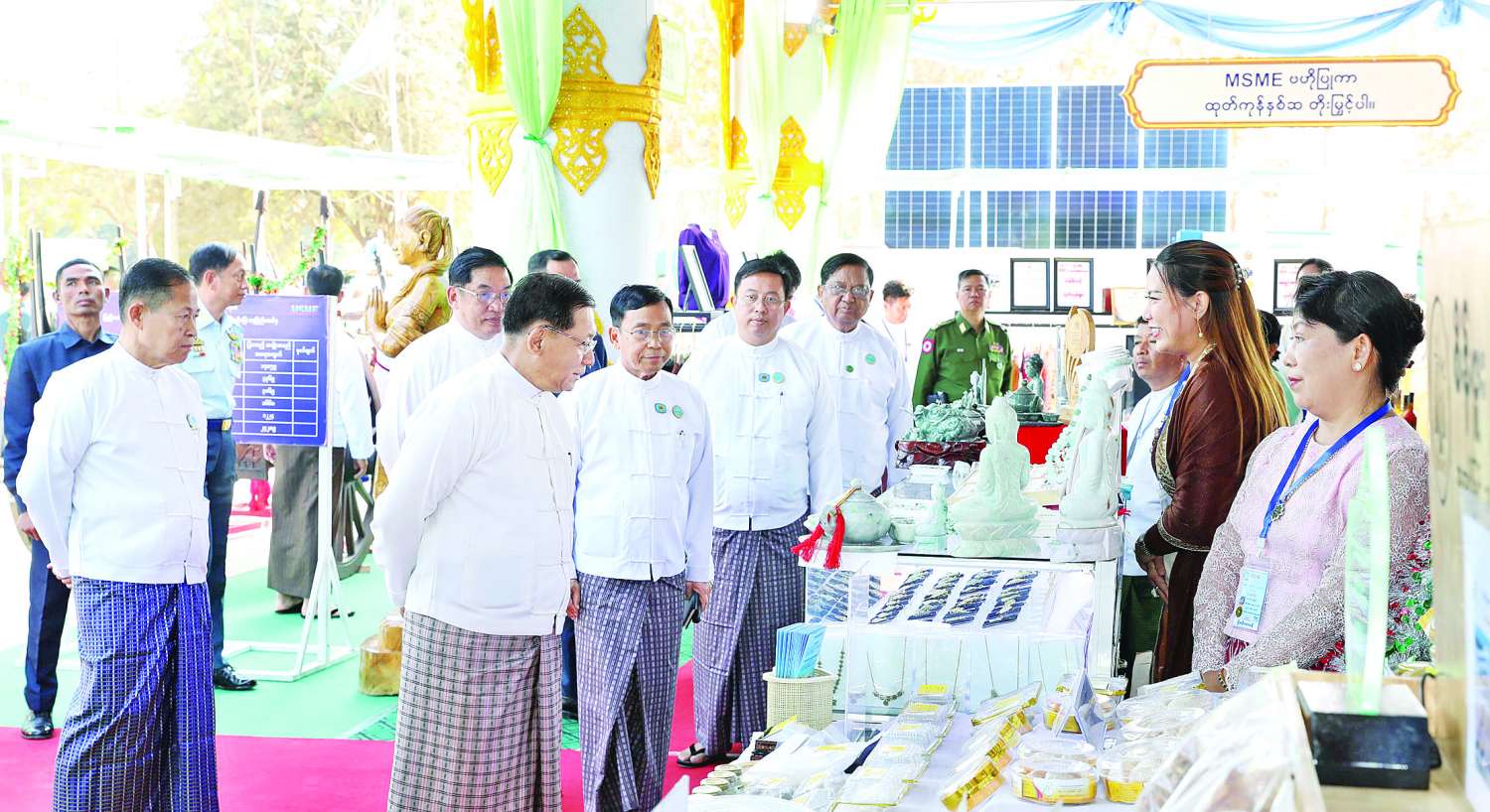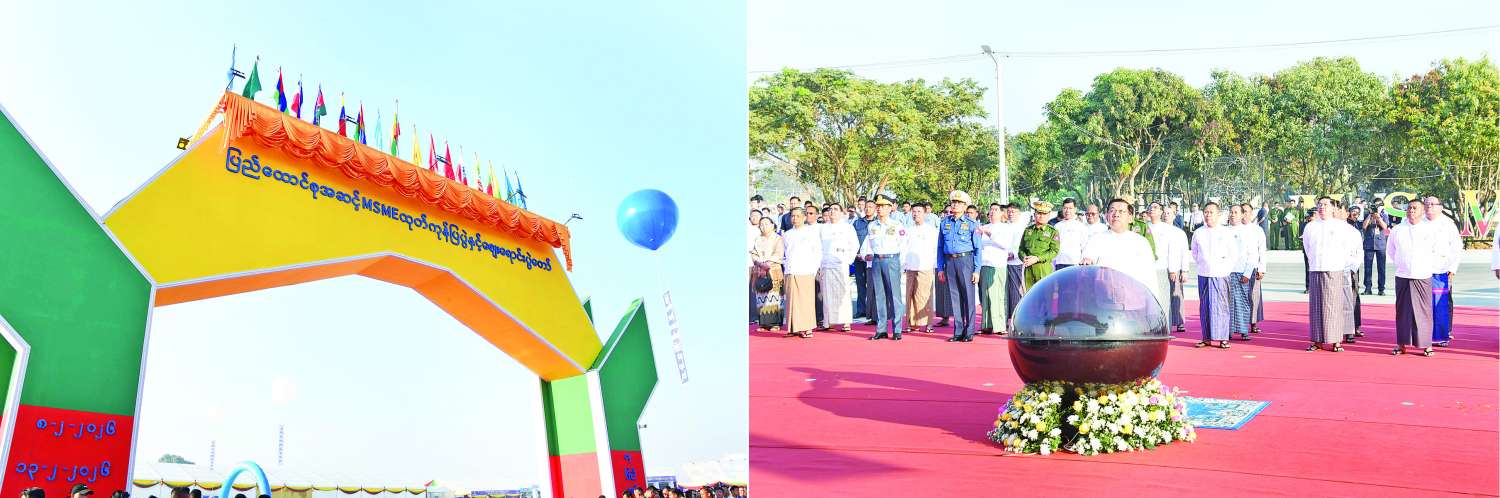 ထို့နောက် ၂၀၂၆ ခုနှစ် (၇၉) နှစ်မြောက် ပြည်ထောင်စုနေ့အထိမ်းအမှတ် ပြည်ထောင်စုအဆင့် MSME ထုတ်ကုန်ပြပွဲနှင့် ဈေးရောင်းပွဲတော်အခမ်းအနားကို ကော်မရှင်ဒုတိယဥက္ကဋ္ဌ ဒုတိယဗိုလ်ချုပ်မှူးကြီးစိုးဝင်း၊ နိုင်ငံတော်ဝန်ကြီးချုပ် ဦးညိုစော၊ ပြည်ထောင်စုဝန်ကြီးများဖြစ်ကြသည့် ဒေါက်တာကံဇော်၊ ဦးလှမိုး၊ ဒေါက်တာချာလီသန်း၊ ဦးချစ်ဆွေနှင့် နေပြည်တော်ကောင်စီဥက္ကဋ္ဌ ဦးသန်းထွန်းဦးတို့က ဖဲကြိုးဖြတ်ဖွင့်လှစ်ပေးကြသည်။