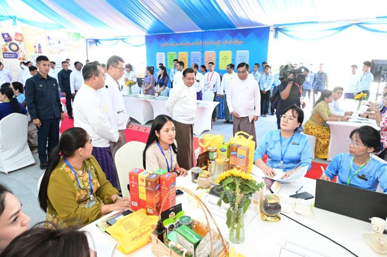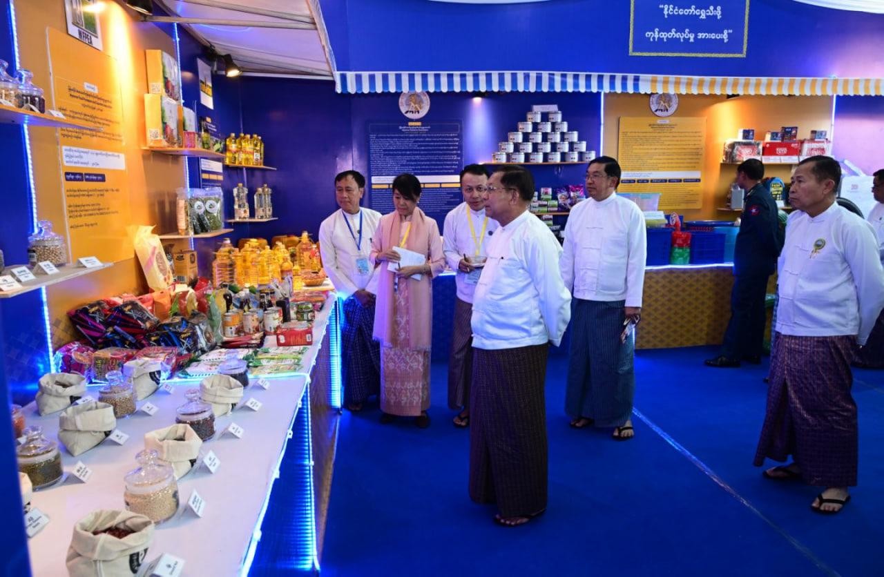 ပြည်ထောင်စုသမ္မတမြန်မာနိုင်ငံတော် ယာယီသမ္မတ နိုင်ငံတော်လုံခြုံရေးနှင့်အေးချမ်းသာယာရေးကော်မရှင်ဥက္ကဋ္ဌ ဗိုလ်ချုပ်မှူးကြီး မင်းအောင်လှိုင် ၂၀၂၆ ခုနှစ်၊ (၇၉) နှစ်မြောက် ပြည်ထောင်စုနေ့အထိမ်းအမှတ် ပြည်ထောင်စုအဆင့် MSME ထုတ်ကုန်ပြပွဲနှင့် ဈေးရောင်းပွဲတော်ရှိ ပြခန်းများအား သွားရောက်ကြည့်ရှုအားပေး