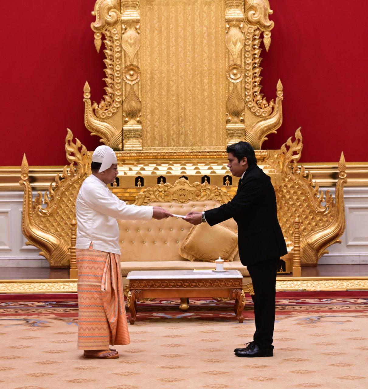 ပြည်ထောင်စုသမ္မတ မြန်မာနိုင်ငံတော်ယာယီသမ္မတ နိုင်ငံတော်လုံခြုံရေးနှင့် အေးချမ်းသာယာရေးကော်မရှင်ဥက္ကဋ္ဌ ဗိုလ်ချုပ်မှူးကြီးမင်းအောင်လှိုင်ထံ မြန်မာနိုင်ငံဆိုင်ရာ နီကာရာဂွါသမ္မတနိုင်ငံသံအမတ်ကြီးက သံအမတ်ခန့်အပ်လွှာပေးအပ်
