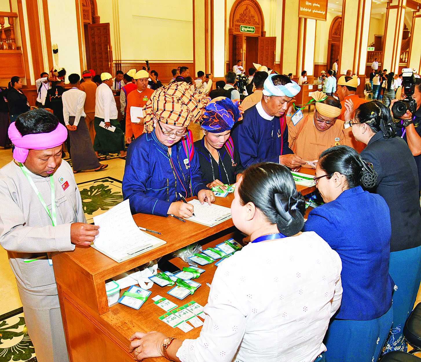 ဆက်လက်၍ ပြည်သူ့လွှတ်တော်ကိုယ်စားလှယ်များက သဘာပတိရှေ့မှောက်၌ ကတိသစ္စာပြုကြပြီး ကတိသစ္စာပြုလွှာပေါ်တွင် လက်မှတ်ရေးထိုးကြသည်။