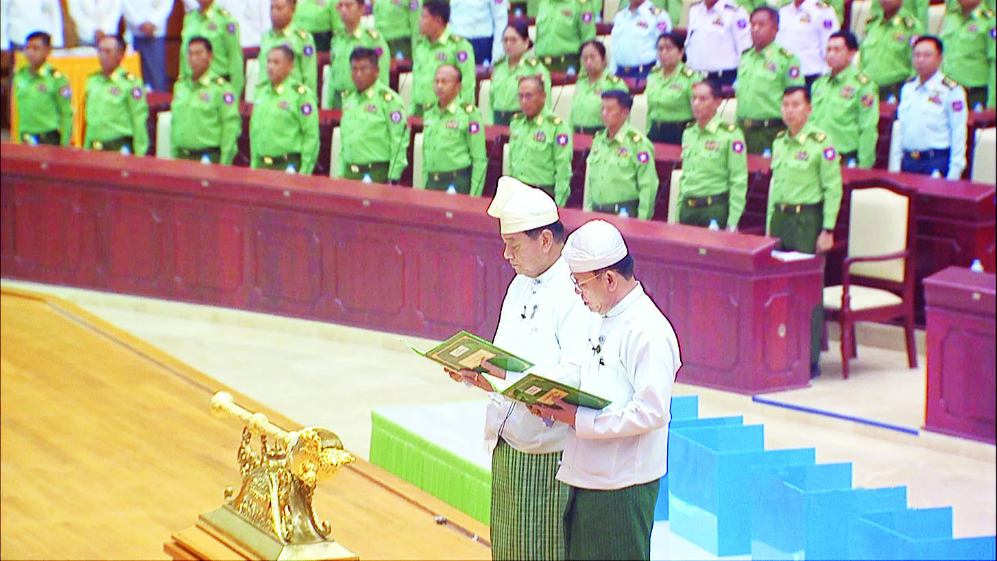ကိုယ်စားလှယ်များက ကျွန်တော့်အား ယုံကြည်စွာ တာဝန်အပ်နှင်းမှုအပေါ် အလေးအနက်ခံယူပြီး ဒီတာဝန်ကိုကျေပွန်စေရန် ဖွဲ့စည်းပုံအခြေခံဥပဒေ၊ သက်ဆိုင်ရာဥပဒေ၊ နည်းဥပဒေများနှင့်အညီ အကောင်းဆုံး ကြိုးပမ်းဆောင်ရွက်သွားမှာဖြစ်ကြောင်းလည်း အလေးအနက်ထား ကတိပြုအပ်ပါတယ်။ လွှတ်တော်ကိုယ်စားလှယ်များ တစ်ဦးနှင့်တစ်ဦး ရင်းရင်းနှီးနှီးချစ်ချစ်ခင်ခင် ပွင့်ပွင့်လင်းလင်းနှင့် ဒီမိုကရေစီကျင့်စဉ်အတိုင်း တက်ညီလက်ညီ ဝိုင်းဝန်းဖော်ဆောင်သွားကြစေလိုပါတယ်။ ဒါ့အပြင် သဘောထားကြီးခြင်း၊ သည်းခံခွင့်လွှတ်ခြင်း၊ အပြန်အလှန်လေးစားခြင်း၊ အပြန်အလှန် ပူးပေါင်းဆောင်ရွက်ခြင်းတို့ဖြင့် အားလုံးနှင့်အတူ နိုင်ငံတော်နှင့် ပြည်သူများအတွက် ပိုမိုကောင်းမွန်တဲ့အနာဂတ် တစ်နည်းပြောရရင် ပိုမိုခိုင်မာပြည်မြန်မာကို ဖော်ဆောင်ပေးနိုင်မယ်လို့ အလေးအနက် ယုံကြည်ပါကြောင်း။