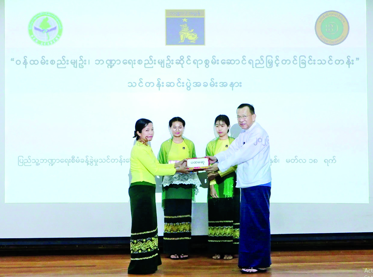 ဝန်ထမ်းစည်းမျဉ်း၊ ဘဏ္ဍာရေးစည်းမျဉ်းဆိုင်ရာ စွမ်းဆောင်ရည်မြှင့်တင်ခြင်းသင်တန်းဆင်းပွဲကို ယနေ့ မွန်းလွဲပိုင်းတွင် နေပြည်တော်ရှိ ဘဏ္ဍာရေးနှင့်အခွန်ဝန်ကြီးဌာန ရသုံးမှန်းခြေ ငွေစာရင်းဦးစီးဌာန ပြည်သူ့ဘဏ္ဍာရေးစီမံခန့်ခွဲမှု သင်တန်းကျောင်း၌ကျင်းပရာ ဘဏ္ဍာရေးနှင့် အခွန်ဝန်ကြီးဌာန ပြည်ထောင်စုဝန်ကြီး ဒေါက်တာကံဇော်၊ ဒုတိယဝန်ကြီးများဖြစ်ကြသော ဒေါ်သန်းသန်းလင်းနှင့် ဦးဟန်ဝင်းအောင်၊ ဌာနဆိုင်ရာတာဝန်ရှိသူများ၊ သင်တန်းနည်းပြများနှင့် သင်တန်းသား သင်တန်းသူများ တက်ရောက်ကြသည်။