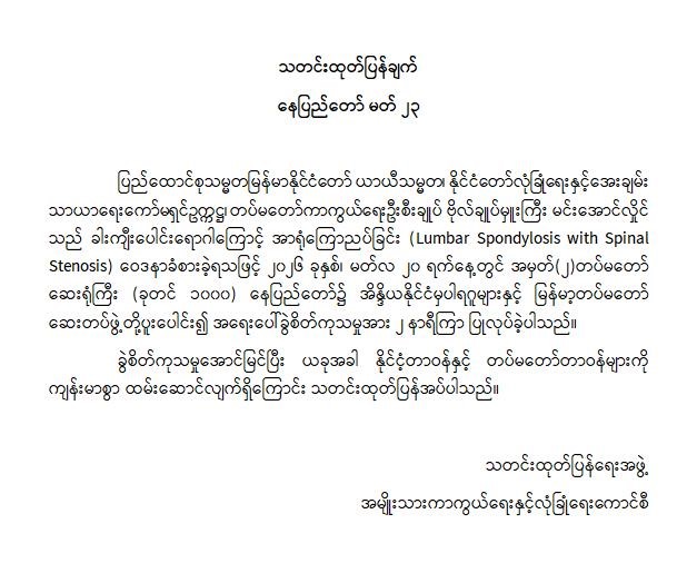 ဝန်ကြီးဌာန ကြေညာချက်များ