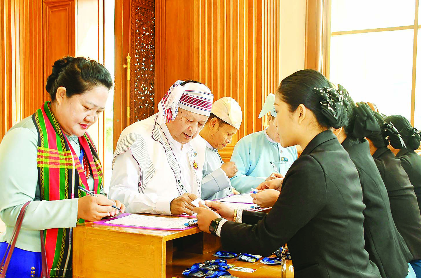 ယင်းနောက် အမျိုးသားလွှတ်တော်ဥက္ကဋ္ဌက နိုင်ငံတော်သမ္မတအရည်အချင်းနှင့် ပြည့်စုံမှု ရှိ မရှိ စိစစ်နိုင်ရန် စိစစ်ရေး အဖွဲ့ကို ပြည်ထောင်စုလွှတ်တော်တွင် ပါဝင်သော လွှတ်တော်နှစ်ရပ်၏ ဥက္ကဋ္ဌများနှင့် ဒုတိယဥက္ကဋ္ဌများ၊ ရွေးကောက်ခံ ပြည်သူ့လွှတ်တော်ကိုယ်စားလှယ်များအစုအဖွဲ့က ရွေးချယ်ပေးသော ပြည်သူ့လွှတ်တော်ကိုယ်စားလှယ်တစ်ဦး၊ ရွေးကောက်ခံ အမျိုးသားလွှတ်တော်ကိုယ်စားလှယ်များအစုအဖွဲ့က ရွေးချယ်ပေးသော အမျိုးသားလွှတ်တော်ကိုယ်စားလှယ်တစ်ဦးနှင့် တပ်မတော်သားလွှတ်တော်ကိုယ်စားလှယ်များအစုအဖွဲ့က ရွေးချယ်ပေးသော တပ်မတော်သား လွှတ်တော်ကိုယ်စားလှယ်တစ်ဦးတို့ဖြင့် ဖွဲ့စည်းရမည်ဖြစ်သောကြောင့် ရွေးကောက်ခံ အမျိုးသားလွှတ်တော်ကိုယ်စားလှယ်များအစုအဖွဲ့က စိစစ်ရေးအဖွဲ့ဝင်တစ်ဦးကို ရွေးချယ်ပေးရန်အတွက် အဆိုပြုလွှာပုံစံများကို အခမ်းအနားမှူးထံမှ ထုတ်ယူပြီး အဆိုပြုကြရန် ကြေညာသည်။