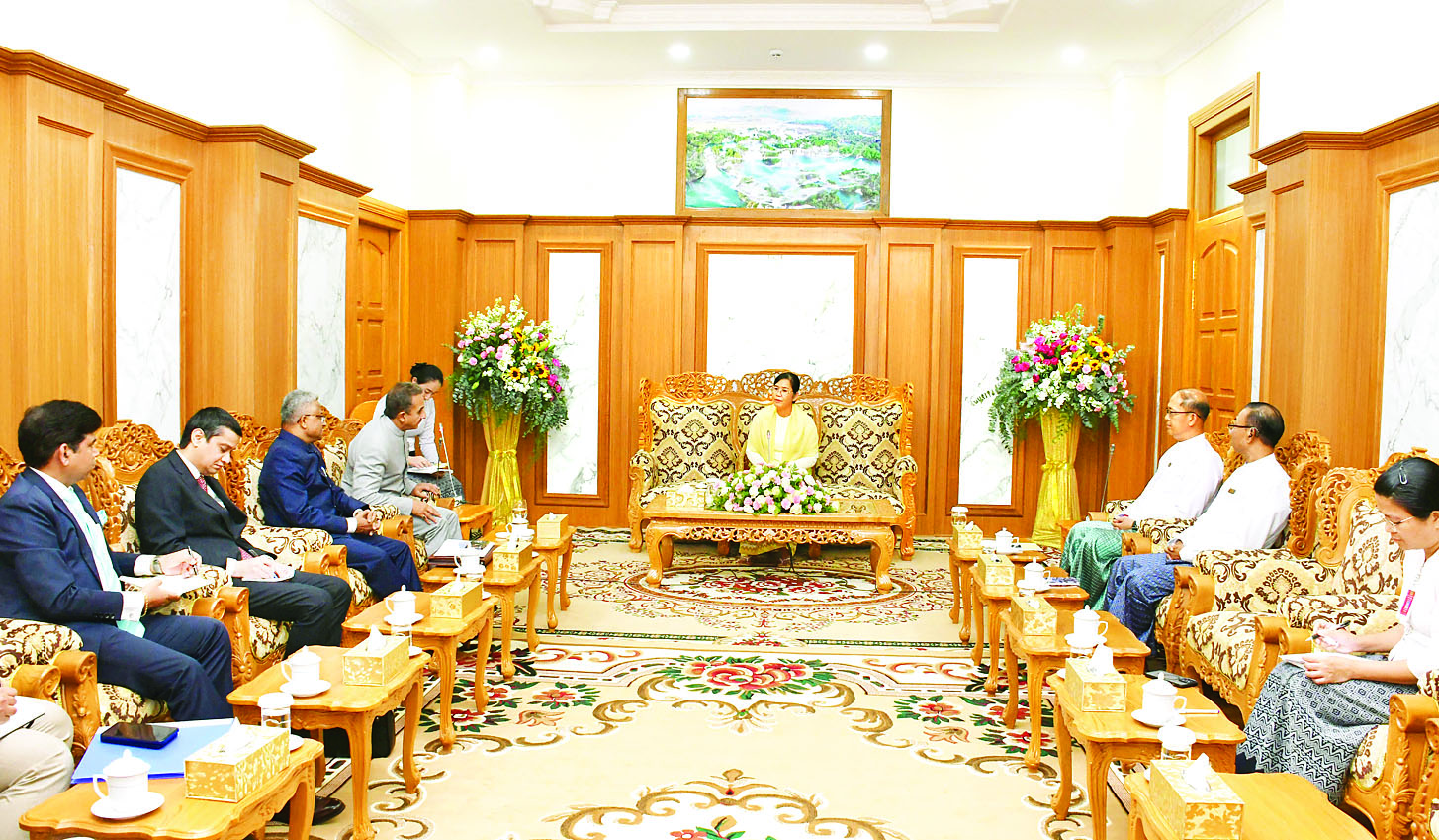 ဒုတိယသမ္မတ ဒေါ်နန်းနီနီအေး အိန္ဒိယနိုင်ငံ ပြည်ပရေးရာဝန်ကြီးဌာန ဒုတိယဝန်ကြီး H.E. Mr. Kirti Vardhan Singh ကို လက်ခံတွေ့ဆုံ