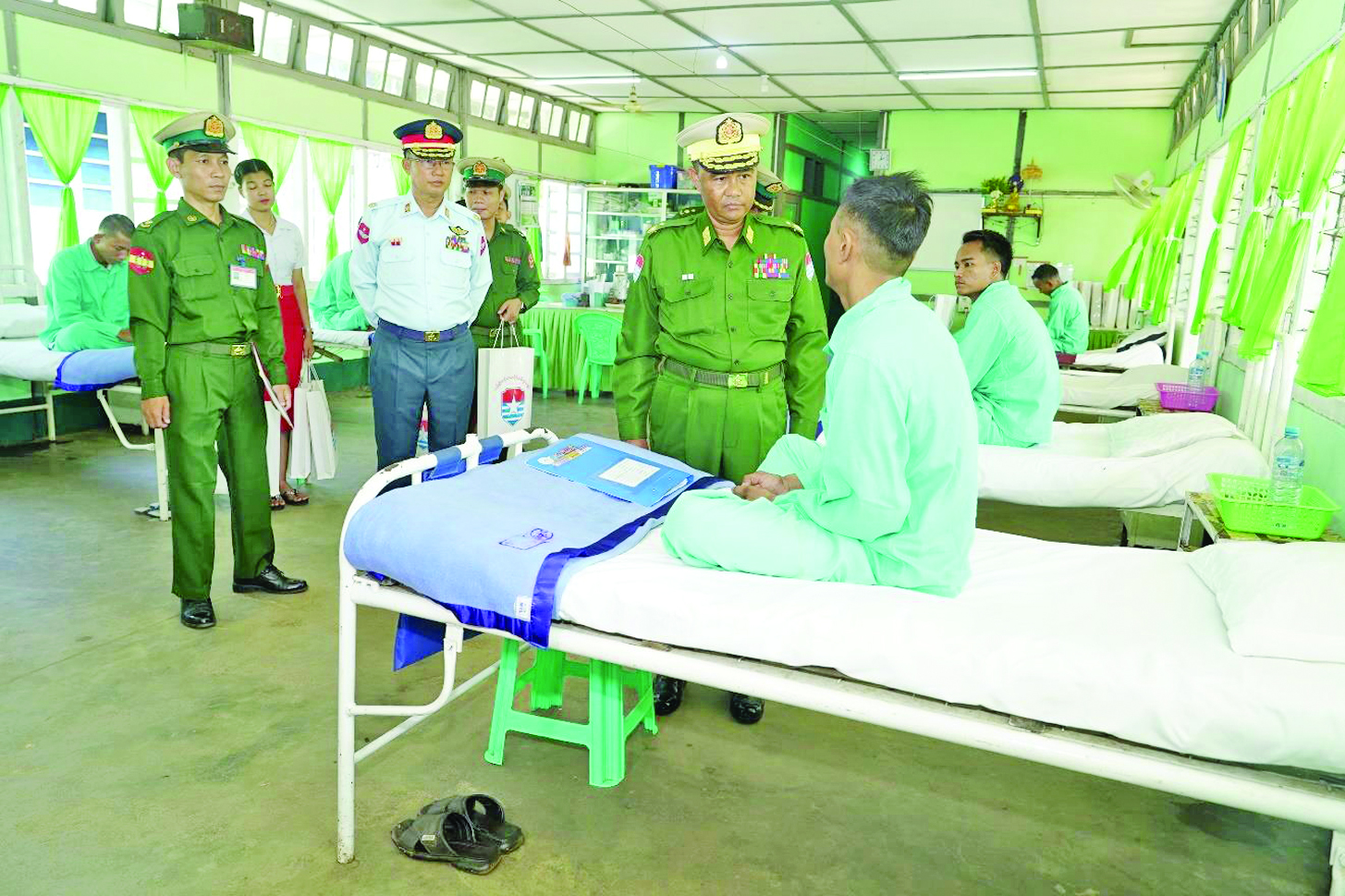 ထိုသို့ဆောင်ရွက်ပေးလျက်ရှိရာ ယနေ့တွင် တနင်္သာရီတိုင်းဒေသကြီး မြိတ်မြို့ရှိ နယ်မြေခံတပ်မတော်ဆေးရုံ၌ တက်ရောက်ဆေးကုသမှုခံယူလျက်ရှိသော အရာရှိ၊ စစ်သည်၊ မိသားစုဝင်များနှင့် ဒေသခံတိုင်းရင်းသားပြည်သူများအား ကမ်းရိုးတန်းဒေသတိုင်းစစ်ဌာနချုပ် တိုင်းမှူး ဗိုလ်ချုပ် ကျော်ကျော်ဟန်နှင့် တာဝန်ရှိသူများက သွားရောက်ကြည့်ရှု၍ လူနာတစ်ဦးချင်း၏ ရောဂါဖြစ်ပွားမှု၊ ဆေးဝါးကုသပေးထားမှုနှင့် ကျန်းမာရေးတိုးတက်ကောင်းမွန်မှုအခြေအနေများကို ရင်းရင်းနှီးနှီးမေးမြန်းအားပေးစကား ပြောကြားကာ အာဟာရဖြည့်စားသောက်ဖွယ်ရာများ ပေးအပ်သည်။