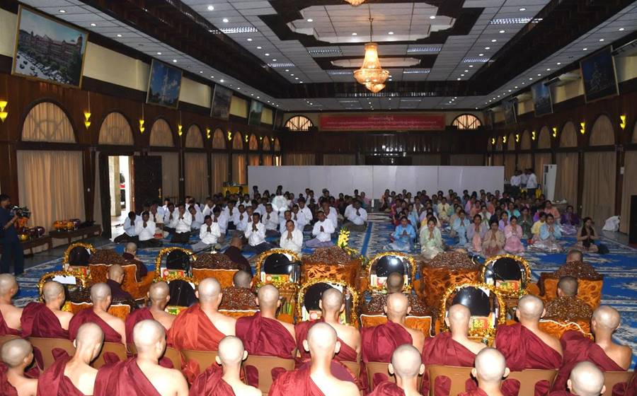ဦးစွာ ရဟန်းလောင်းများနှင့် ရှင်သာမဏေများအား သီရိမင်္ဂလာကမ္ဘာအေးစေတီတော်အတွင်း ရှင်လောင်းလှည့်လည်ကြပြီး တိုင်းစစ်ဌာနချုပ်ရှိ အနော်ရထာခန်းမ၌ ရဟန်းလောင်း ၃၉ ပါးနှင့် ရှင်သာမဏေလောင်း ၃၃ ပါးတို့ကို ဆံချမင်္ဂလာပြုလုပ်ကြသည်။ ယင်းနောက် တိုင်းမှူးနှင့် တက်ရောက်လာကြသူများက စမ်းချောင်းကျောင်းတိုက်ဆရာတော် ဘဒ္ဒန္တ ဒေါက်တာဝဏ္ဏသီရိထံမှ ငါးပါးသီလခံယူဆောက်တည်ကြပြီး ရဟန်းလောင်းများနှင့် ရှင်သာမဏေလောင်းများအား သင်္ကန်းစည်းပေးကာ သာသနာ့ဘောင်သို့ သွတ်သွင်းချီးမြှင့်ပေးကြသည်။