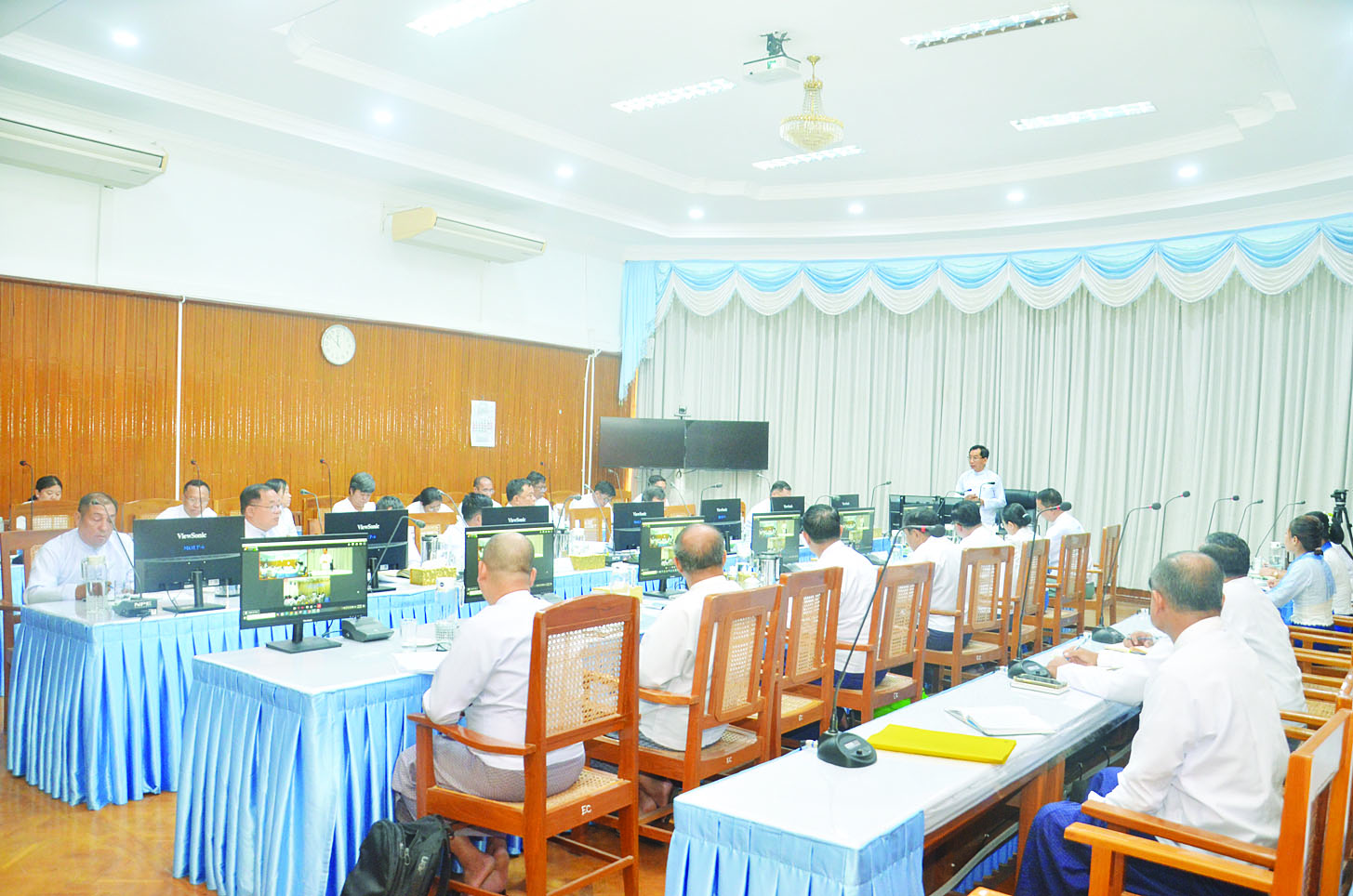 ဦးစွာ ပြည်ထောင်စုဝန်ကြီးက လျှပ်စစ်ဓာတ်အား တိုးမြှင့်ထုတ်လုပ်ဖြန့်ဖြူးပေးနိုင်မည့် အခြေအနေများနှင့်ပတ်သက်၍ ညှိနှိုင်းဆွေးနွေးသုံးသပ်ပြီး တိုးတက်ဖြန့်ဖြူးပေးနိုင်မည့်အခြေအနေနှင့် အခြားရရှိနိုင်မည့်နည်းလမ်းများကိုလည်း စီမံဆောင်ရွက်သွားမည်ဖြစ်ပါကြောင်း၊ ဆောင်ရွက်ဆဲ လျှပ်စစ်ဓာတ်အားထုတ်လုပ်ရေး စီမံကိန်းများကိုလည်း အမြန်ဆုံးပြီးစီးနိုင်ရေး သက်ဆိုင်ရာအဖွဲ့အစည်းများကို တွန်းအားပေးကြပ်မတ်သွားမည်ဖြစ်ကြောင်း၊ အကြမ်းဖက်ဖျက်ဆီးခံရသည့် အချို့သော ရေအားလျှပ်စစ်စီမံကိန်းများ၊ မဟာဓာတ်အားလိုင်းများ၊ ဓာတ်အားခွဲရုံများကို အမြန်ဆုံးပြုပြင်ဆောင်ရွက်သွားမည်ဖြစ်ကြောင်း၊ ပြန်လည်ပြုပြင်ခြင်း လုပ်ငန်းများ ဆောင်ရွက်နေချိန်တွင်လည်း အကြမ်းဖက်တိုက်ခိုက်မှုများခံရပြီး မိမိတို့ဝန်ထမ်းများ သေဆုံး၊ ထိခိုက်၊ ဒဏ်ရာရမှုများကြောင့် နှောင့်နှေးကြန့်ကြာမှုများရှိပါကြောင်း၊ စီမံကိန်းများပြီးစီးမှုနောက်ကျခဲ့ခြင်းကြောင့် ပြည်သူလူထု၏ ဓာတ်အားလိုအပ်ချက်ကို ပြည့်ဝစွာဖြည့်ဆည်းပေးနိုင်ခြင်းမရှိခဲ့ကြောင်း၊ LNG သည် ဈေးနှုန်းကြီးမြင့်သော်လည်းလတ်တလောတွင် အချိန်အတိုင်းအတာတစ်ခုအထိ ဖြည့်ဆည်းသုံးစွဲနေကြရမည်ဖြစ်သည့်အတွက် နိုင်ငံတော်အစိုးရအနေဖြင့် စီမံထားပြီးဖြစ်ကြောင်း။