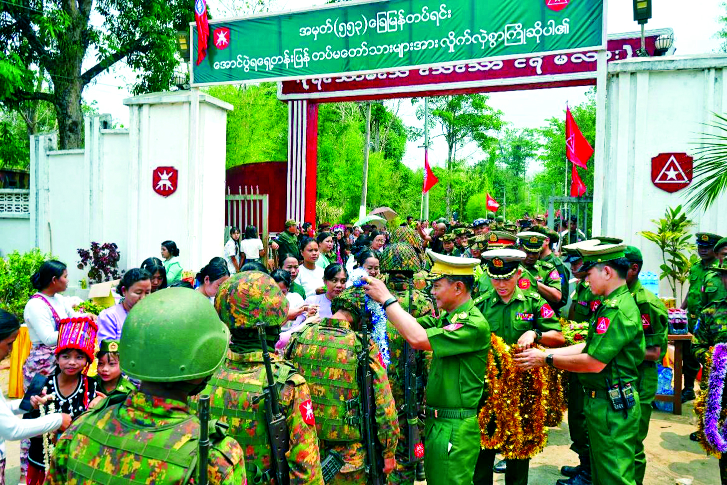 နိုင်ငံတော်တည်ငြိမ်ရေးနှင့်နယ်မြေအေးချမ်းသာယာရေးတို့အတွက် ရှမ်းပြည်နယ် (မြောက်ပိုင်း) မူဆယ်ဒေသတစ်ဝိုက် နယ်မြေလုံခြုံရေး တာဝန်များကိုထမ်းဆောင်၍ ပြန်လည်ရောက်ရှိလာသော ရှေ့တန်းပြန် နိုင်ငံ့သားကောင်းတပ်မတော်သားများအား ဂုဏ်ပြုကြိုဆိုခြင်းကို ယနေ့မွန်းလွဲပိုင်းတွင် ရှမ်းပြည်နယ် (အရှေ့ပိုင်း) မိုင်းတွမ်းမြို့ရှိ နယ်မြေခံတပ်ရင်း၌ပြုလုပ်ရာ တြိဂံဒေသတိုင်းစစ်ဌာနချုပ်တိုင်းမှူး ဗိုလ်ချုပ်စိုးမြတ်ထွဋ်နှင့် တာဝန်ရှိသူများ၊ အရာရှိ၊ စစ်သည်၊ မိသားစုဝင်များ၊ မြန်မာနိုင်ငံစစ်မှုထမ်းဟောင်းအဖွဲ့ဝင်များ၊ ဌာနဆိုင်ရာတာဝန်ရှိသူများ၊ ဒေသခံတိုင်းရင်းသားပြည်သူများ ပါဝင်တက်ရောက်ဂုဏ်ပြုကြိုဆိုကြသည်။