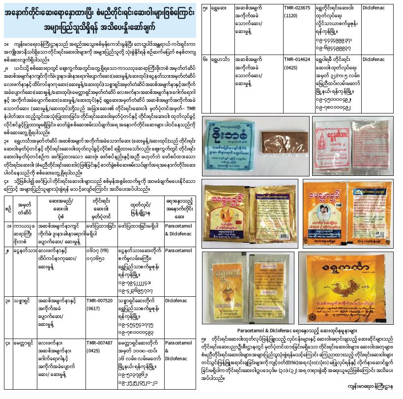 အနောက်တိုင်းဆေးရောနှောထားပြီး စံမညီတိုင်းရင်းဆေးဝါးများဖြစ်ကြောင်း အများပြည်သူသိရှိရန် အသိပေးနှိုးဆော်ချက် 04/29/2026