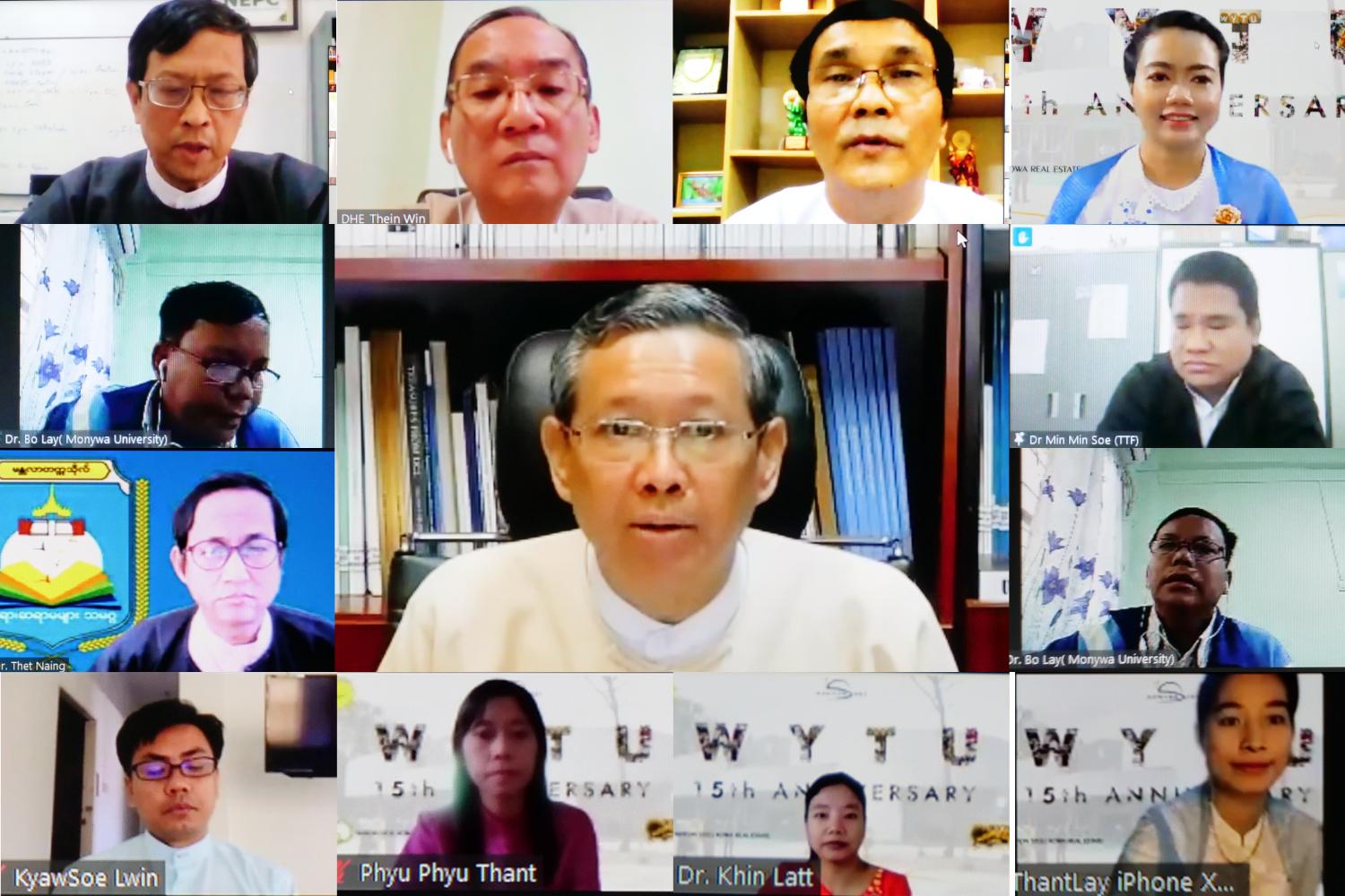 ရန်ကုန်အနောက်ပိုင်းနည်းပညာတက္ကသိုလ် (၁၅)နှစ်ပြည့် အထိမ်းအမှတ်ဖွင့်ပွဲ အခမ်းအနားကို ယနေ့ နံနက် ၁၀ နာရီတွင်  အွန်လိုင်းစနစ်ဖြင့် ကျင်းပသည်။