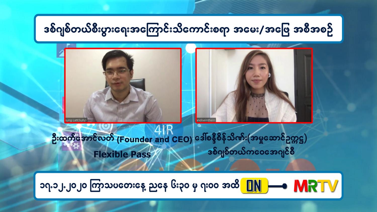 ဒီဇင်ဘာ ၁ ရက် (ကြာသပတေးနေ့) ညနေတွင်  Digital နည်းပညာဖြစ်သည့် E-Commerce စနစ်ကို သုံး၍ ကုန်စည်နှင့်ဝန်ဆောင်မှုလုပ်ငန်းများ လက်တွေ့ရောင်းချ၊ ဝယ်ယူမှု အခြေအနေနှင့် ပတ်သက်ပြီး ဗဟုသုတမျှဝေပေးမည့် ဒစ်ဂျစ်တယ် စီးပွားရေး အကြောင်း သိကောင်းစရာအစီအစဉ်ကို Flexible Pass (Founder & CEO) ဦးထက်အောင်လတ်နှင့် ဒစ်ဂျစ်တယ်ကဝေအေဂျင်စီ (အမှုဆောင် ဥက္ကဌ) ဒေါ်စန္ဒီစိန် သိဏ်း တို့ က ဆွေးနွေးကြမည်ဖြစ်ရာ ၎င်းဆွေးနွေးချက်များကို ညနေ ၆ နာရီခွဲ တွင် ထုတ်လွှင့် သွားမည် ဖြစ်ကြောင်း သိရသည်။