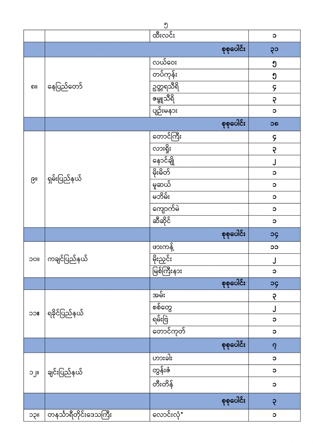 (၁၆-၁၂-၂၀၂၀) ရက်နေ့ ဓာတ်ခွဲစစ်ဆေးမှုများ၌ တွေ့ရှိခဲ့သော ဓာတ်ခွဲအတည်ပြုလူနာ (၁,၂၃၃) ဦး၏ မြို့နယ်အလိုက် တွေ့ရှိရမှုအခြေအနေမှာ အောက်ပါအတိုင်း ဖြစ်ပါသည်။