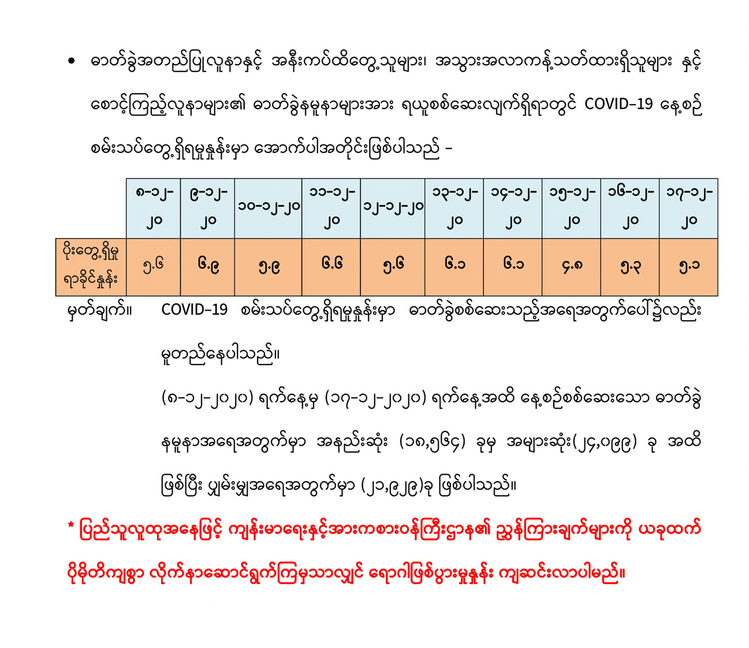 COVID-19 ရောဂါစောင့်ကြပ်ကြည့်ရှုမှုနှင့်ပတ်သက်၍ သတင်းထုတ်ပြန်ခြင်း