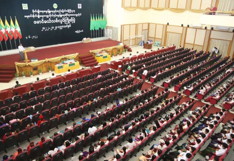 ရေဆင်းစိုက်ပျိုးရေးတက္ကသိုလ်နှင့် မွေးမြူရေးဆိုင်ရာဆေးတက္ကသိုလ်များ၏ မောင်မယ်သစ်လွင် ကြိုဆိုပွဲအခမ်းအနားကို ယနေ့နံနက်ပိုင်းက နေပြည်တော် ဇေယျာသီရိမြို့နယ် ရေဆင်းတက္ကသိုလ်များနယ်မြေရှိ စိုက်ပျိုးရေးတက္ကသိုလ် ဘွဲ့နှင်းသဘင်ခန်းမ၌ ကျင်းပသည်။