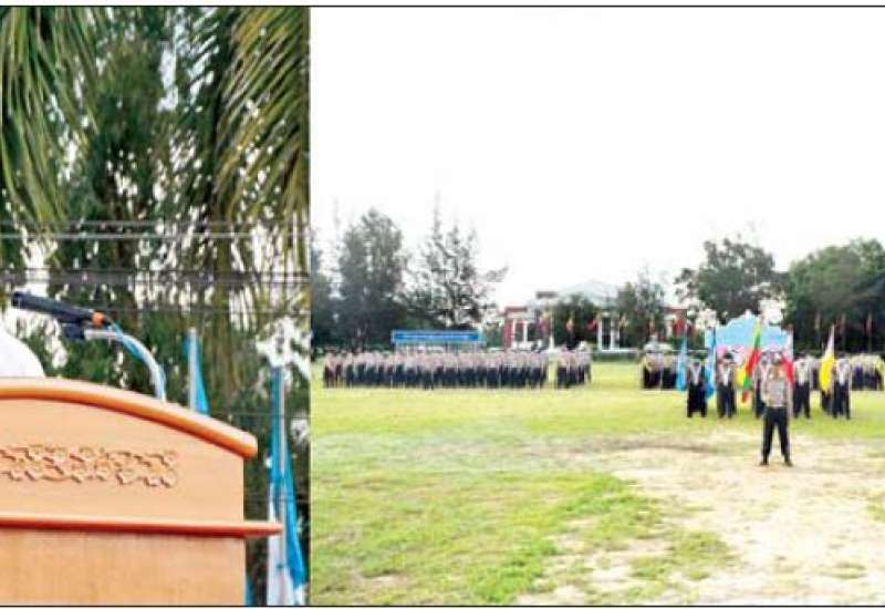 ပြည်ထောင်စုရာထူးဝန်အဖွဲ့ နိုင်ငံ့ဝန်ထမ်း တက္ကသိုလ်(အောက်မြန်မာပြည်)တွင် ဖွင့်လှစ်ခဲ့သည့် စာရေးဝန်ထမ်းကြီးကြပ်မှု တန်းမြင့်သင်တန်း အမှတ်စဉ်(၈၇) နှင့် စာရေးဝန်ထမ်းအခြေခံသင်တန်း အမှတ်စဉ်(၁၉၉)တို့၏ သင်တန်းဆင်း စစ်ရေးပြ အခမ်းအနားကို ယနေ့နံနက် ၇ နာရီခွဲတွင် တက္ကသိုလ်စစ်ရေး ပြကွင်း(၁)၌ ကျင်းပရာ ပြည်ထောင်စုရာထူးဝန်အဖွဲ့ တာဝန်ခံအဖွဲ့ဝင် ဦးစိုးတင့်၊ နိုင်ငံ့ဝန်ထမ်းတက္ကသိုလ်(အောက်မြန်မာပြည်) ပါမောက္ခချုပ် ဦးဇော်ဇော်၊ ဒုတိယပါမောက္ခချုပ်များ၊ ဌာနကြီးမှူးများ၊ တက္ကသိုလ်သင်ကြားရေး/စီမံဌာနများမှ ပါမောက္ခ၊ ဆရာ ဆရာမများနှင့် တာဝန်ရှိသူများ၊ သင်တန်းသား သင်တန်းသူများ တက်ရောက်ကြသည်။