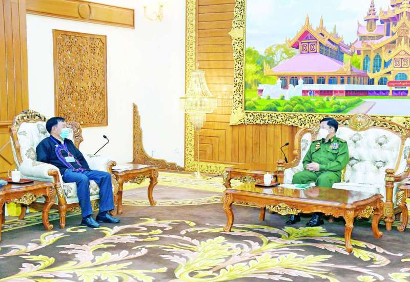 နိုင်ငံတော်စီမံအုပ်ချုပ်ရေးကောင်စီဥက္ကဋ္ဌ တပ်မတော်ကာကွယ်ရေးဦးစီးချုပ် ဗိုလ်ချုပ်မှူးကြီး မင်းအောင်လှိုင်သည် အမျိုးသားဒီမိုကရက်တစ်မဟာမိတ်အဖွဲ့ NDAA(မိုင်းလား)မှ ဒုတိယဥက္ကဋ္ဌ ဦးစန်ပေ့ ဦးဆောင်သည့် ငြိမ်းချမ်းရေး ကိုယ်စားလှယ်အဖွဲ့အား ယနေ့နံနက်ပိုင်းတွင် နေပြည်တော်ရှိ ဘုရင့်နောင်ရိပ်သာ ဧည့်ခန်းမဆောင်၌တွေ့ဆုံ၍ ငြိမ်းချမ်းရေးဆိုင်ရာကိစ္စရပ်များ ဆွေးနွေးသည်။