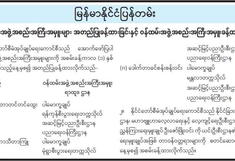 ဝန်ထမ်းအဖွဲ့အစည်းအကြီးအမှူးများ အတည်ပြုခန့်ထားခြင်းနှင့် ဝန်ထမ်းအဖွဲ့အစည်းအကြီး အမှူးခန့်ထားခြင်း