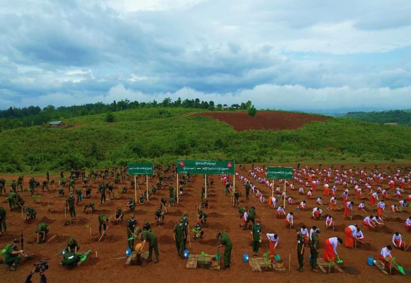 သဘာဝပတ်ဝန်းကျင်အားထိန်းသိမ်းနိုင်စေရန်နှင့် ရာသီဥတုကိုအထောက်အကူဖြစ်စေရန်၊ အရိပ်အာဝါသရရှိစေရန်၊ နိုင်ငံ့စီးပွားရေးအတွက် တစ်ဖက်တစ်လမ်းမှ အထောက်အကူဖြစ်စေရန်ရည်ရွယ်၍ ကာကွယ်ရေးဦးစီးချုပ်ရုံး(ကြည်း၊ ရေ၊ လေ)မိသားစုများနှင့် တိုင်းစစ်ဌာနချုပ်အသီးသီးတို့တွင် ၂၀၁၁ ခုနှစ်မှစ၍ နှစ်စဉ်မိုးရာသီတစ်အုပ်တစ်မသစ်ပင်စိုက်ပျိုးပွဲများ ကျင်းပပြုလုပ်လျက်ရှိသည်။
