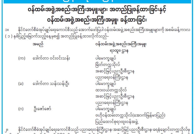 ဝန်ထမ်းအဖွဲ့အစည်းအကြီးအမှူးများ အတည်ပြုခန့်ထားခြင်းနှင့် ဝန်ထမ်းအဖွဲ့အစည်း အကြီးအမှူး ခန့်ထားခြင်း