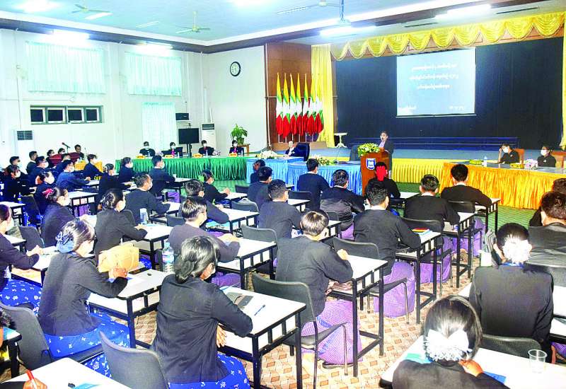 ဥပဒေအရာရှိအဆင့်-၄ (အစမ်းခန့်)များ လုပ်ငန်းခွင်ဝင်သင်တန်း အမှတ်စဉ် ၁/၂၀၂၂ သင်တန်းဆင်းပွဲ အခမ်းအနားကို ယနေ့မွန်းလွဲပိုင်းတွင် ဥပဒေရေးရာဝန်ကြီးဌာန မြေညီထပ် အစည်းအဝေးခန်းမ၌ ကျင်းပသည်။