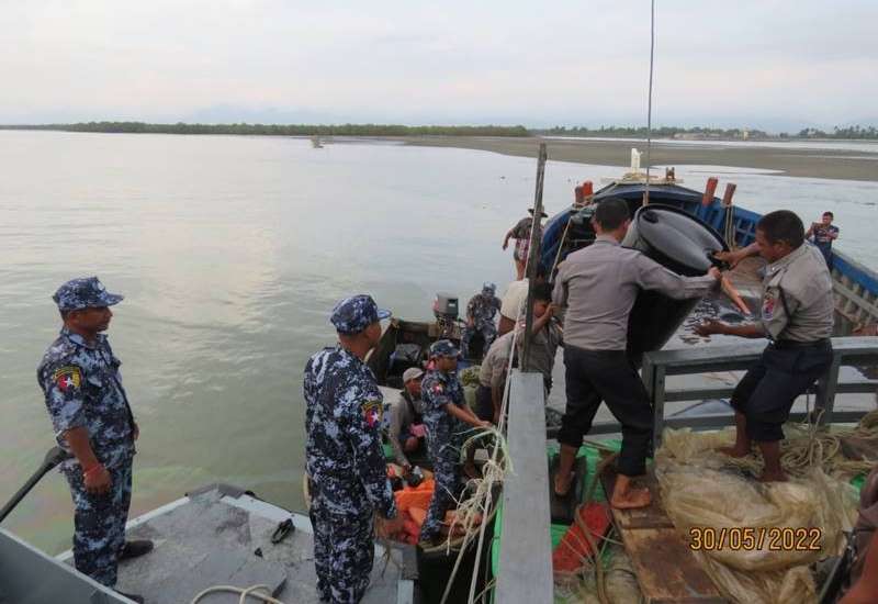 ရခိုင်ပြည်နယ်၊ မောင်တောမြို့နယ်၊ နတ်မြစ်ကမ်းနံဘေးရှိ မကျီးချောင်းဝ၌ လုံခြုံရေးဆောင်ရွက်နေသော တပ်ဖွဲ့ဝင်များသည် ယနေ့နံနက် ၁၀ နာရီ ၄၀ မိနစ်ခန့်တွင် မန်ကျီးချောင်းဝ၏ အနောက်ဘက်နတ်မြစ်အတွင်း စက်လှေ ၁ စီးမျောပါနေကြောင်း တွေ့ရှိရသဖြင့် သွားရောက်စစ်ဆေးရာ အလျား ၆၅ ပေ၊ အနံ ၁၇ ပေရှိ လှိုင်ထက်စံအမည်ရှိ ကုန်တင်စက်လှေဖြစ်ကြောင်းသိရှိရပြီး လှေ၏ ဦးပိုင်းမှရေဝင်၍ နစ်မြုပ်လျက်ရှိသဖြင့် စက်လှေပေါ်ရှိ လှေပိုင်ရှင်အပါအဝင် အမျိုးသား ၆ ဦးကို ကူညီ ကယ်ဆယ်ခဲ့သည်။