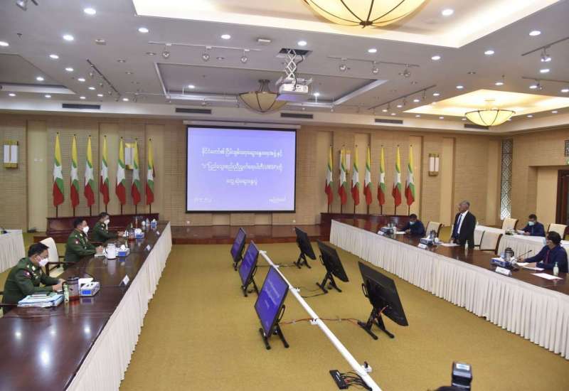 ပြည်ထောင်စုအစိုးရအဖွဲ့ အစည်းအဝေး အမှတ်စဉ်(၄/၂၀၂၂)ကို ယနေ့မွန်းလွဲပိုင်းတွင် နေပြည်တော်ရှိ နိုင်ငံတော်စီမံအုပ်ချုပ်ရေးကောင်စီဥက္ကဋ္ဌရုံး အစည်းအဝေးခန်းမ၌ ကျင်းပရာ နိုင်ငံတော်စီမံအုပ်ချုပ်ရေးကောင်စီဥက္ကဋ္ဌ နိုင်ငံတော်ဝန်ကြီးချုပ် ဗိုလ်ချုပ်မှူးကြီး မင်းအောင်လှိုင် တက်ရောက်အမှာစကား ပြောကြားသည်။