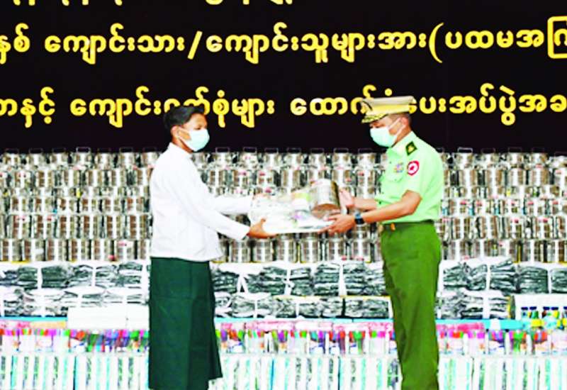 ၂၀၂၂-၂၀၂၃ ပညာသင်နှစ်တွင် တက်ရောက် ပညာသင်ကြားကြမည့် ရန်ကုန်တိုင်းစစ်ဌာနချုပ်ရှိ ကျောင်းသား/ကျောင်းသူများအတွက် ပညာသင်စရိတ်၊ စာရေးကိရိယာနှင့် ကျောင်းဝတ်စုံများ ပေးအပ်ခြင်းကို ယနေ့မွန်းလွဲပိုင်းတွင် တိုင်းစစ်ဌာနချုပ်၊ အနော်ရထာခန်းမ၌ပြုလုပ်ရာ တိုင်းမှူး ဗိုလ်ချုပ်ညွန့်ဝင်းဆွေနှင့် အရာရှိ၊ စစ်သည်၊ မိသားစုများ၊ ကျောင်းသား/ကျောင်းသူများ တက်ရောက်သည်။