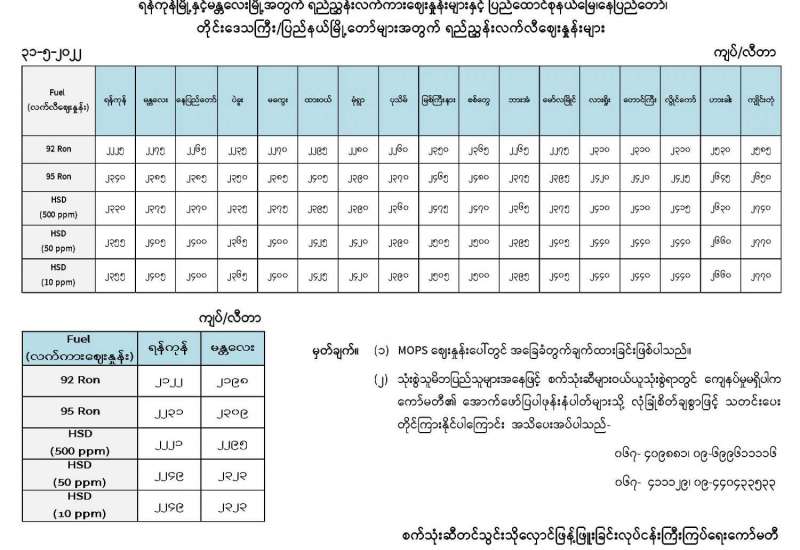 ရန်ကုန်မြို့နှင့် မန္တလေးမြို့အတွက် ရည်ညွှန်းလက်ကားဈေးနှုန်းများနှင့် ပြည်ထောင်စုနယ်မြေ၊ နေပြည်တော်၊ တိုင်းဒေသကြီး/ပြည်နယ် မြို့တော်များအတွက် ရည်ညွှန်းလက်လီဈေးနှုန်းများ