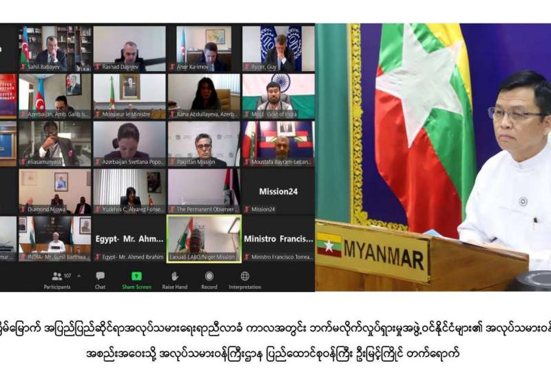 အလုပ်သမားဝန်ကြီးဌာန၊ ပြည်ထောင်စုဝန်ကြီး ဦးမြင့်ကြိုင်သည် ယနေ့တွင် Video Conference စနစ်ဖြင့် ကျင်းပသည့် အကြိမ်(၁၁၀)မြောက် အပြည်ပြည်ဆိုင်ရာ အလုပ်သမားရေးရာညီလာခံ ကာလအတွင်း ဘက်မလိုက်လှုပ်ရှားမှုအဖွဲ့ဝင်နိုင်ငံများ၏ အလုပ်သမားဝန်ကြီးများအစည်းအဝေးသို့ တက်ရောက်သည်။