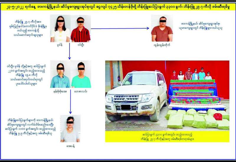 ကချင်ပြည်နယ် ဖားကန့်မြို့နယ်တွင် ငွေကျပ်သိန်း ၇၄၀၀ ကျော်တန်ဖိုးရှိ ဘိန်းဖြူ ၂၉ ဒသမ ၇ ကီလို ဖမ်းဆီးရမိခဲ့ကြောင်း မြန်မာနိုင်ငံရဲတပ်ဖွဲ့မှ သိရသည်။
