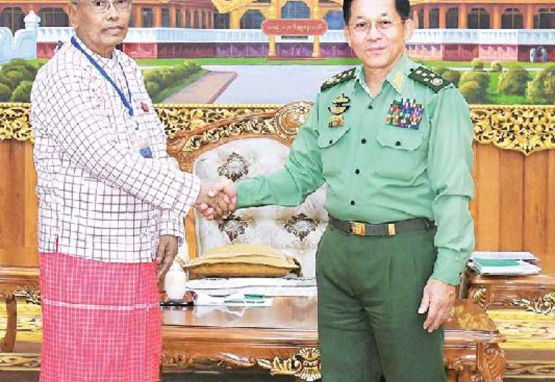 နိုင်ငံတော်စီမံအုပ်ချုပ်ရေးကောင်စီဥက္ကဋ္ဌ တပ်မတော်ကာကွယ်ရေးဦးစီးချုပ် ဗိုလ်ချုပ်မှူးကြီး မင်းအောင်လှိုင်သည် မွန်ပြည်သစ်ပါတီ (NMSP) မှ ဒုတိယဥက္ကဋ္ဌ နိုင်အောင်မင်း ဦးဆောင်သည့် ငြိမ်းချမ်းရေးကိုယ်စားလှယ်အဖွဲ့အား ယနေ့နံနက်ပိုင်းတွင် နေပြည်တော်ရှိ ဘုရင့်နောင်ရိပ်သာ ဧည့်ခန်းမဆောင်၌တွေ့ဆုံ၍ ငြိမ်းချမ်းရေးဆိုင်ရာ ကိစ္စရပ်များ ဆွေးနွေးသည်။